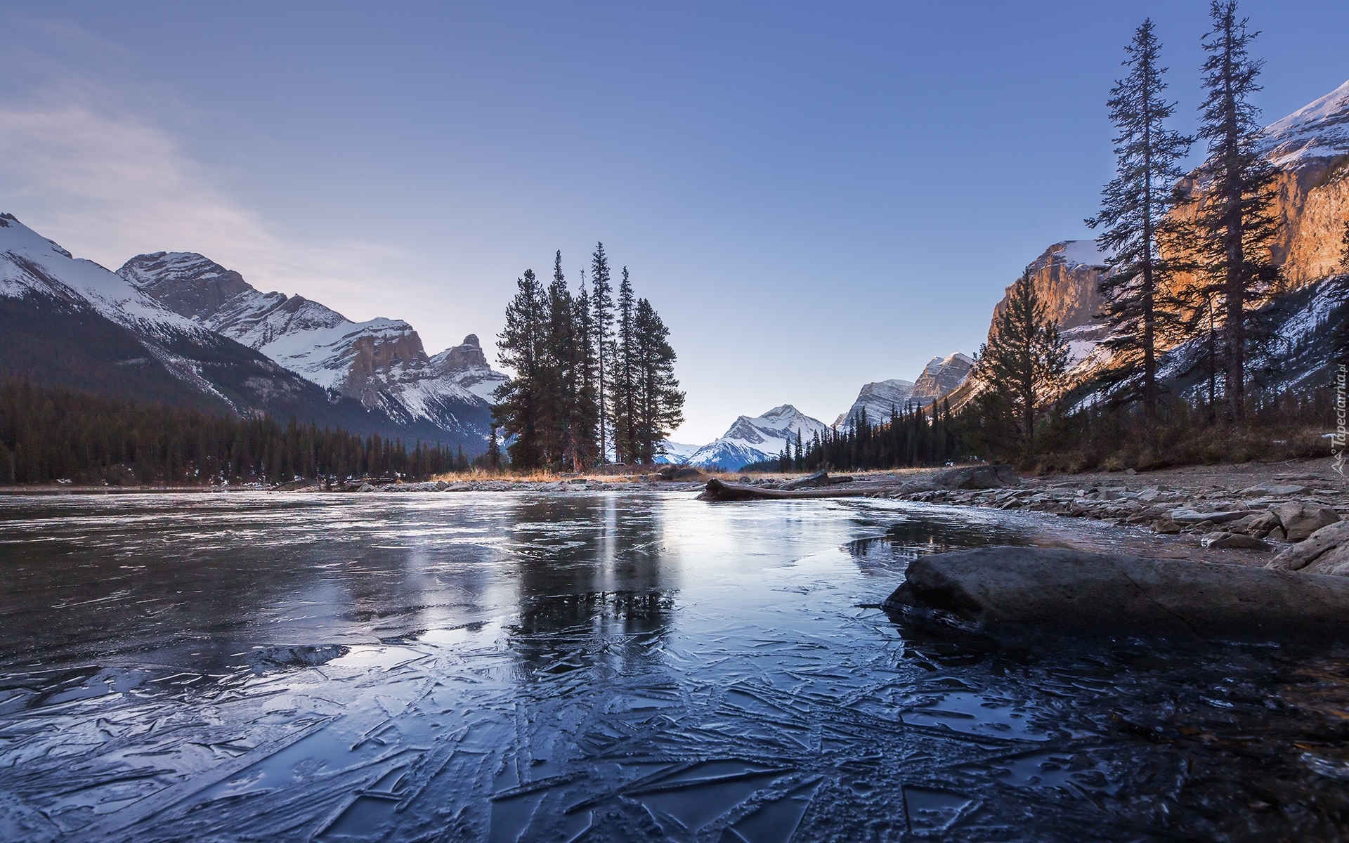 Edytor tapety: Wyspa Ducha na jeziorze Maligne w Kanadzie