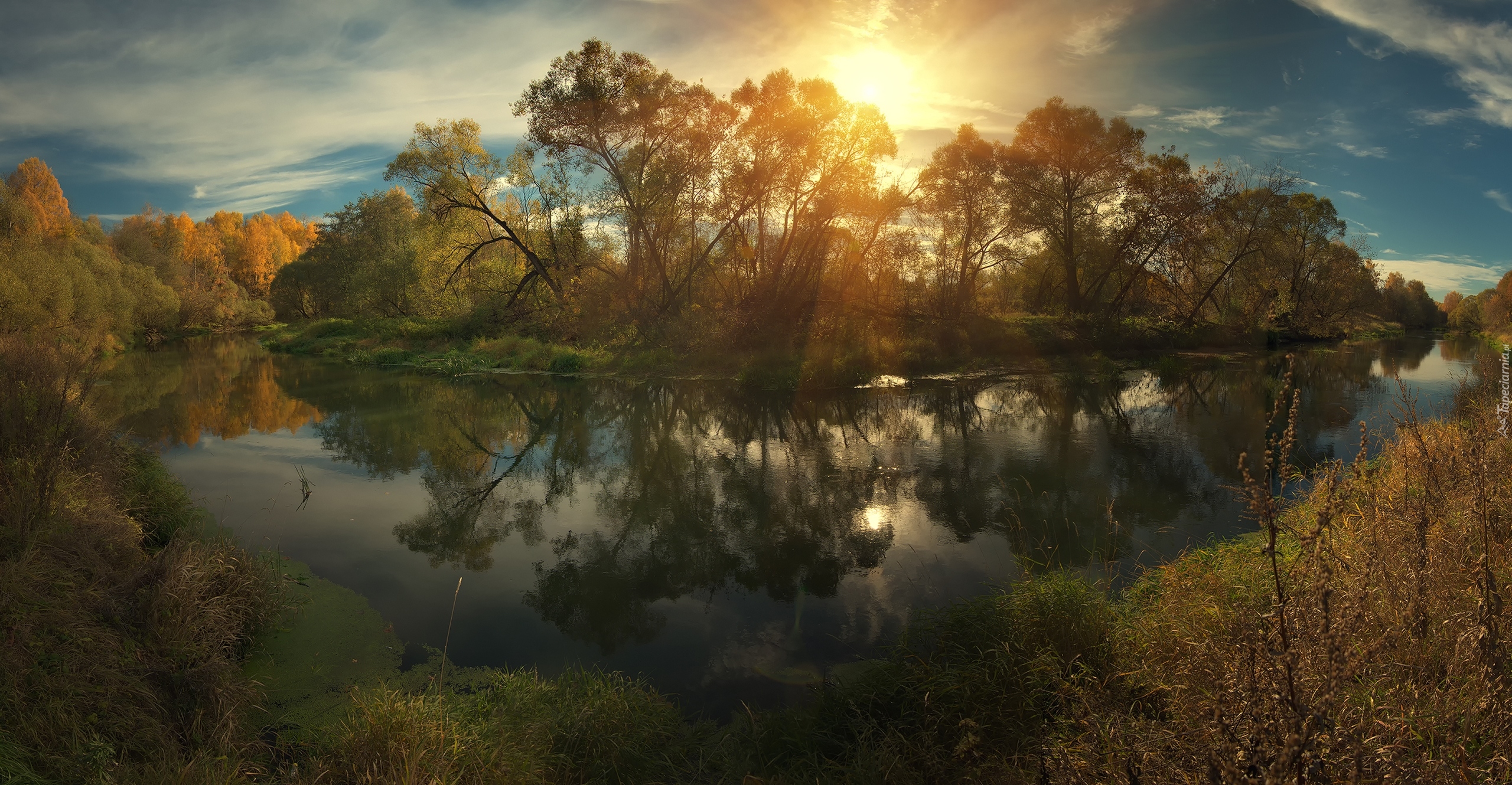 Edytor tapety: Drzewa o poranku nad rzeką Istrą