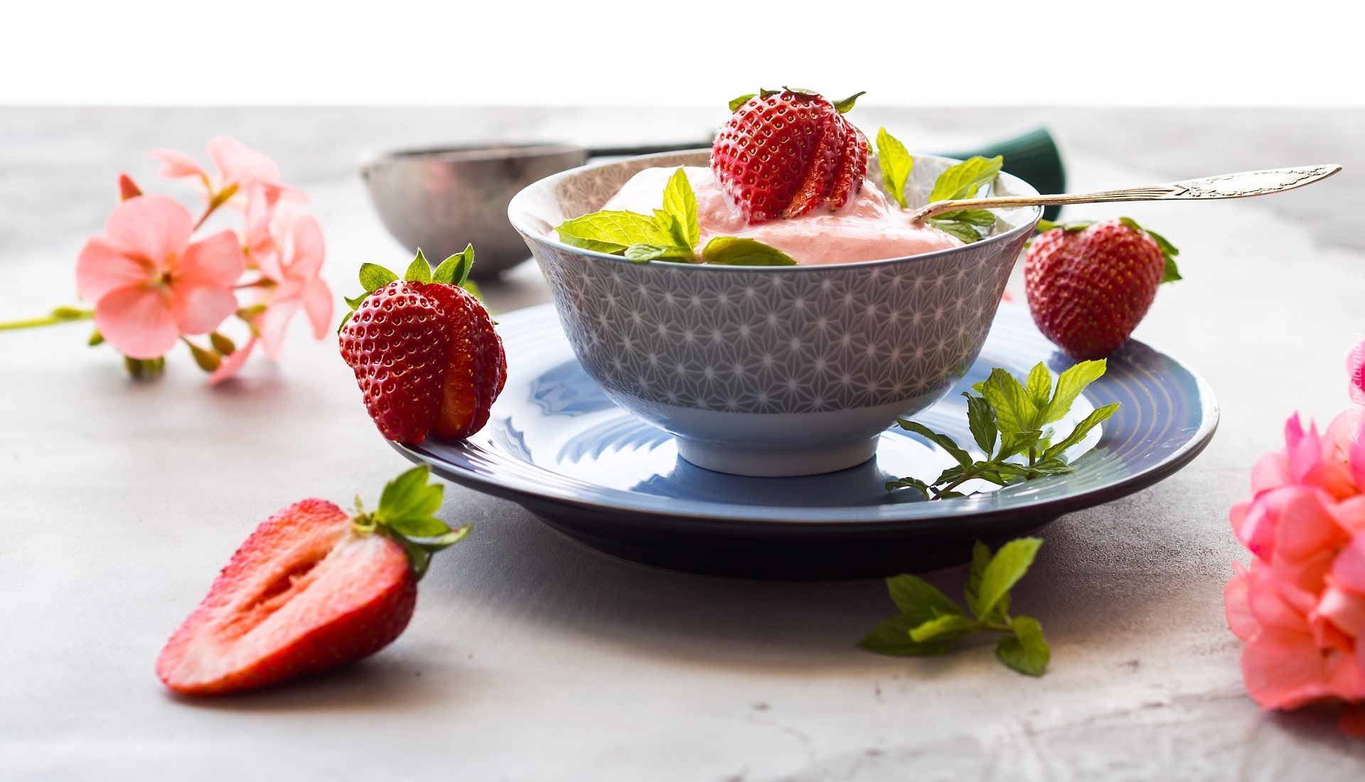 Edytor tapety: Lody w pucharku z truskawkami