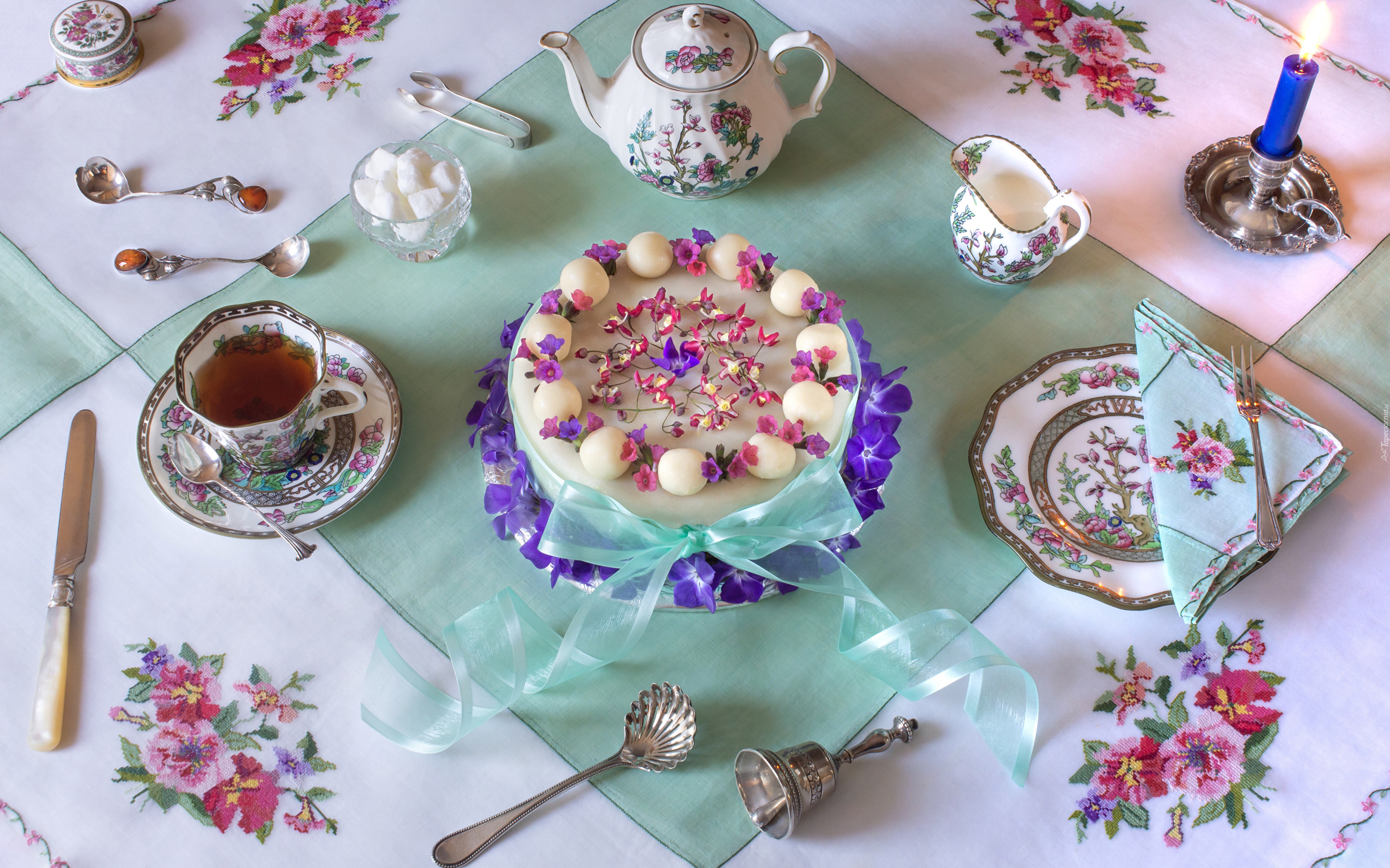 Edytor tapety: Ciasto i herbata w filiżance na stole