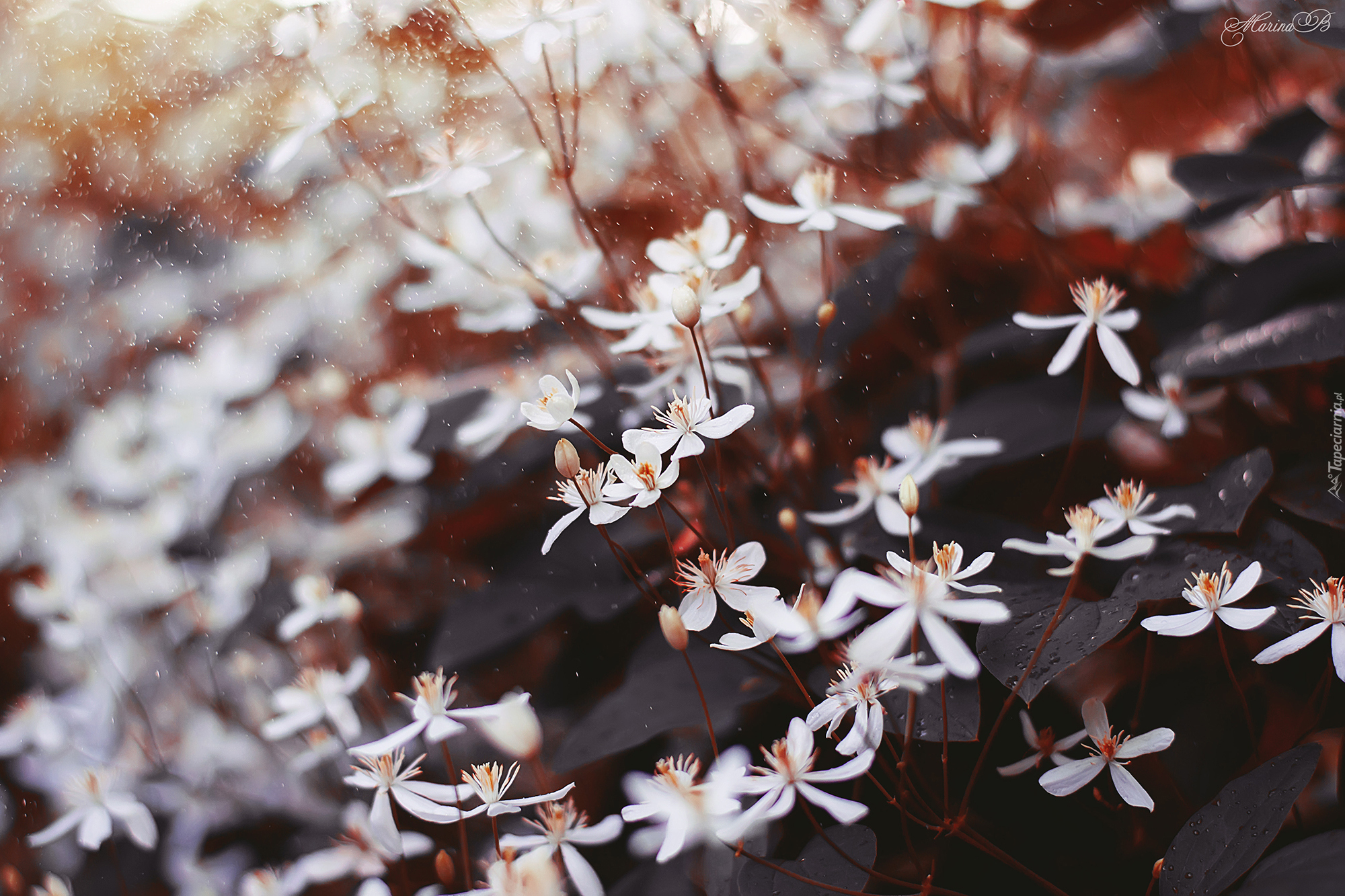 Edytor tapety: Białe drobne kwiatki w rozmyciu