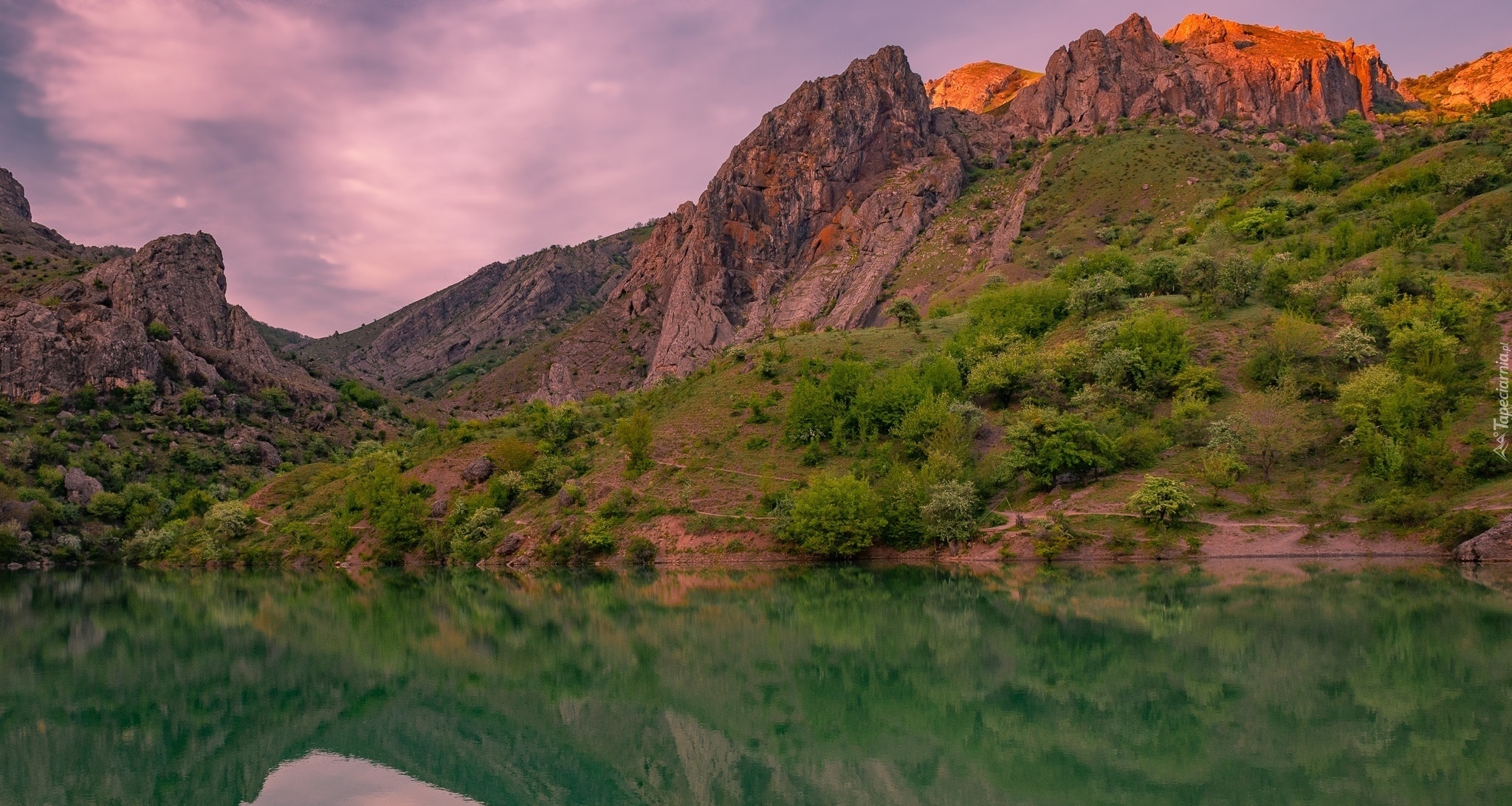 Edytor tapety: Góry nad jeziorem w odbiciu