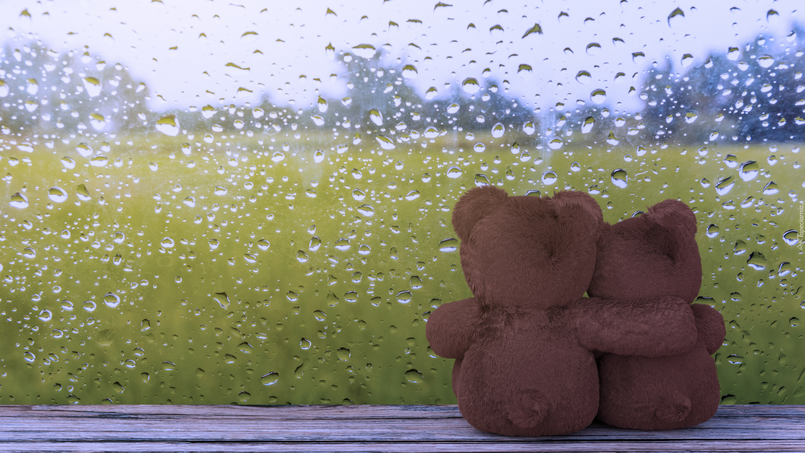 Edytor tapety: Dwa przytulone misie przy oknie