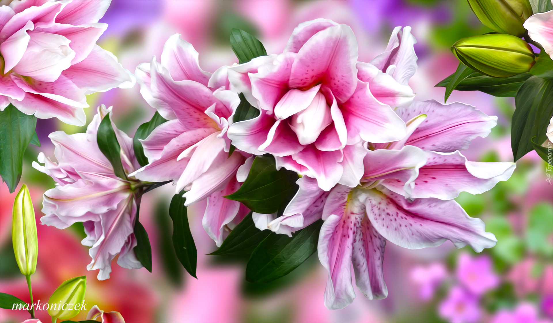 Edytor tapety: Różowo-białe lilie w grafice
