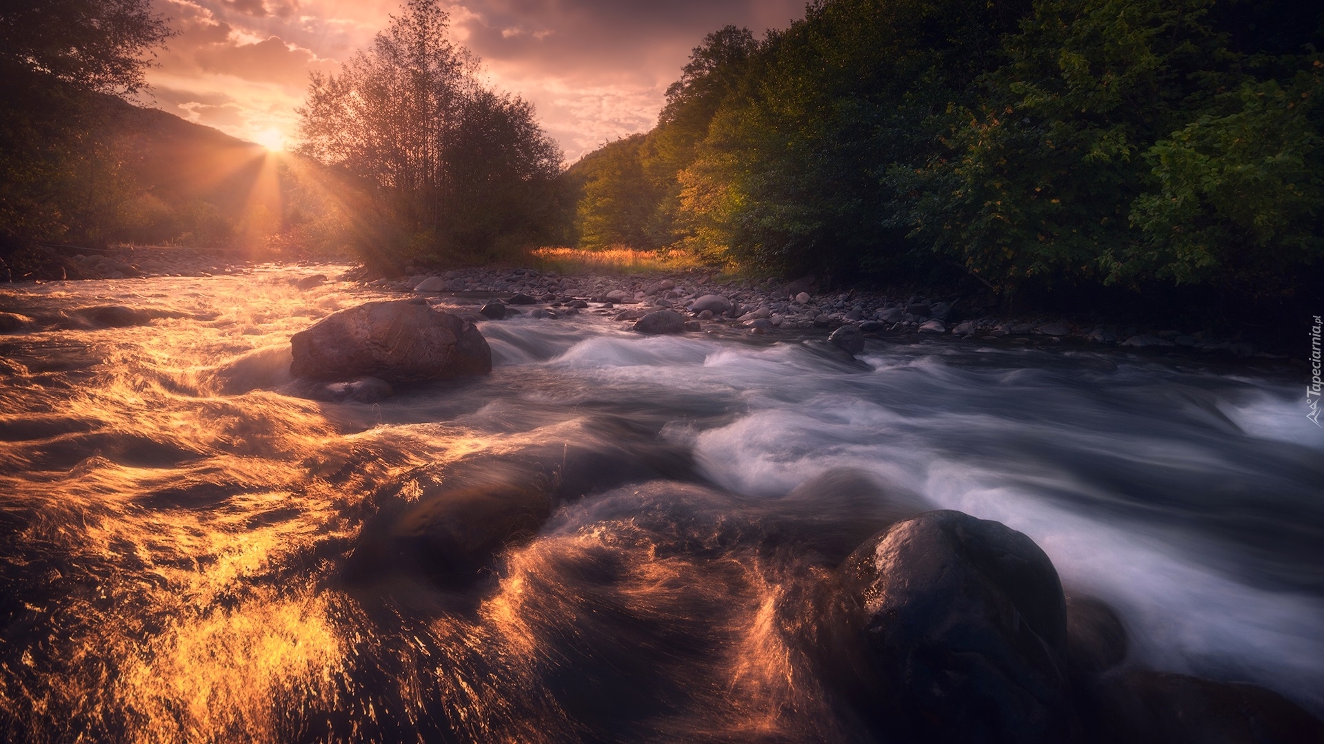 Edytor tapety: Promienie słońca padające na rzekę