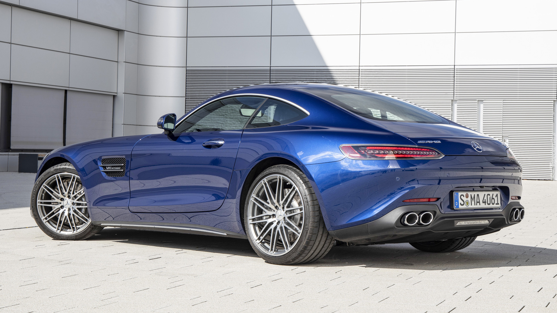 Edytor tapety: Niebieski Mercedes-AMG GT bokiem