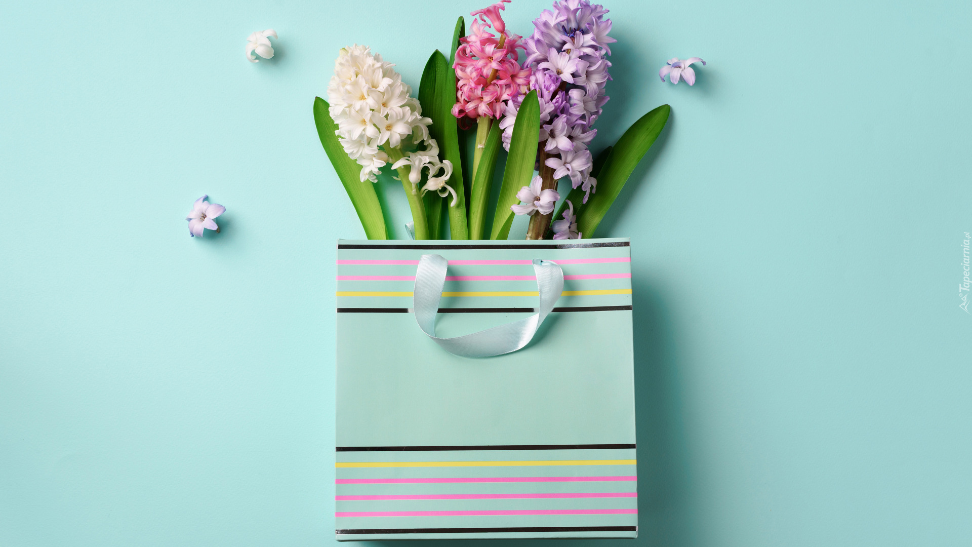 Edytor tapety: Hiacynty w ozdobnej torebce