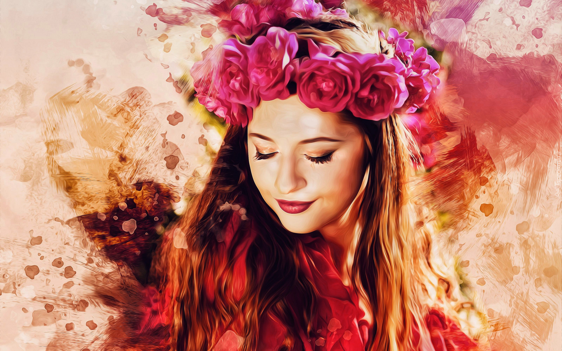 Edytor tapety: Długowłosa dziewczyna w wianku z róż
