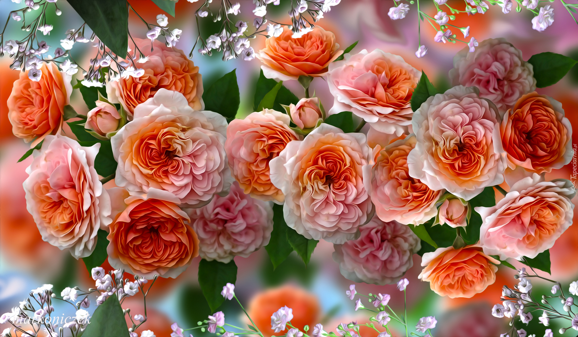 Edytor tapety: Pomarańczowo-różowe róże w grafice
