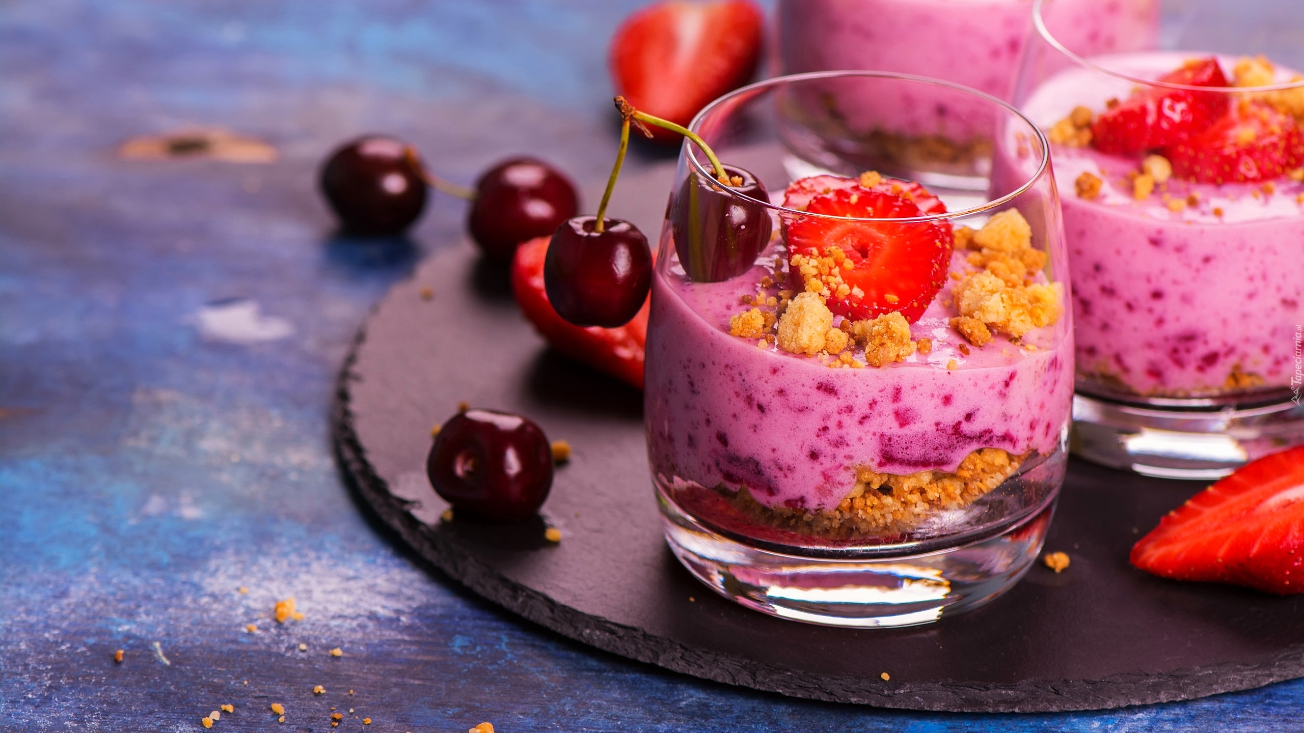 Edytor tapety: Jogurt z owocami w szklankach
