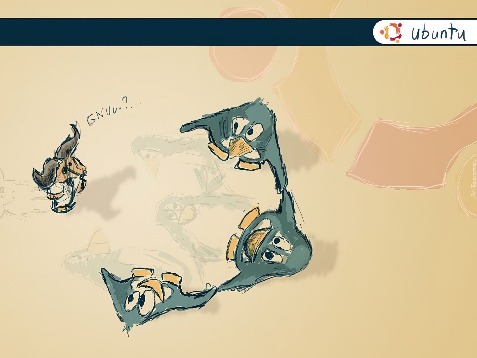 Edytor tapety: Ubuntu, symbol, krąg, kaczki
