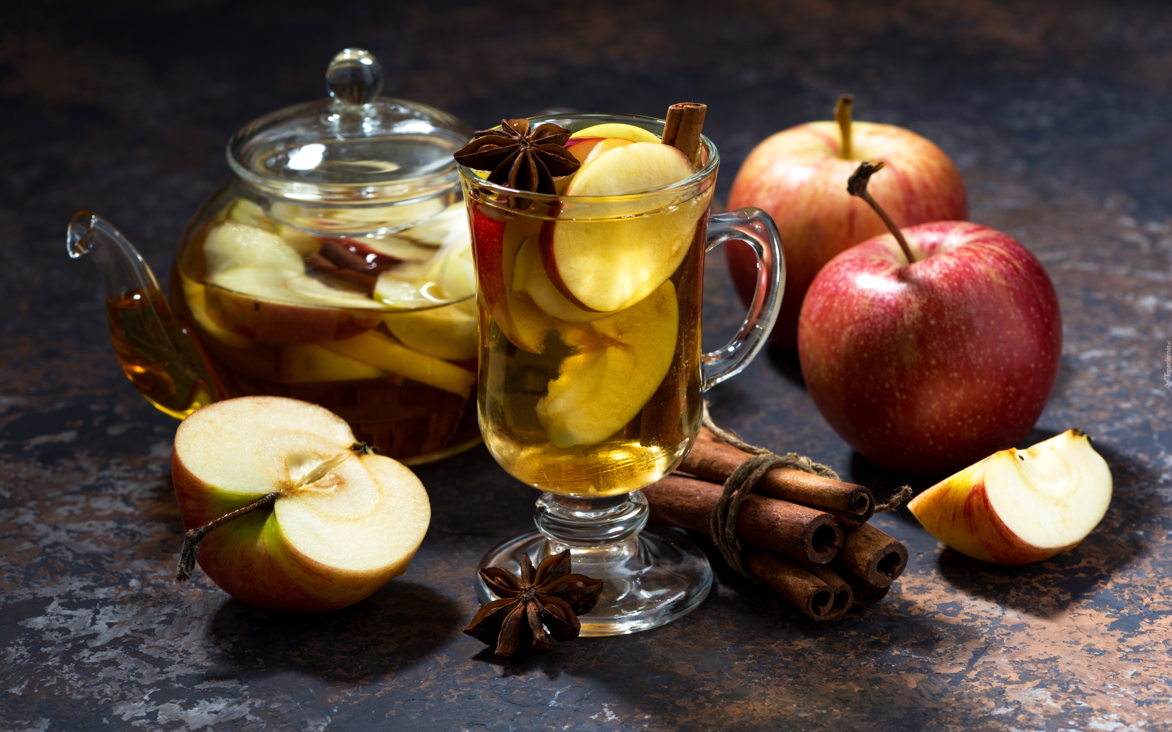 Edytor tapety: Napój jabłkowy w dzbanku i szklance z uchem