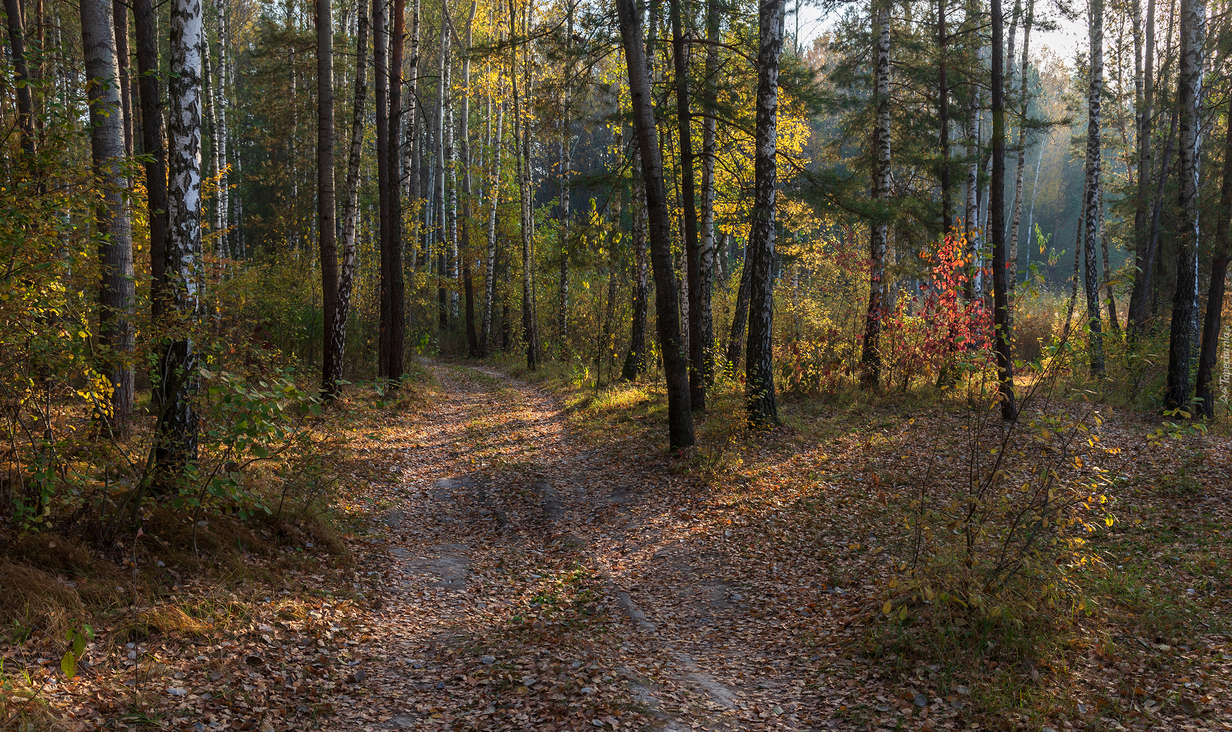 Edytor tapety: Droga pośród drzew w jesiennym lesie
