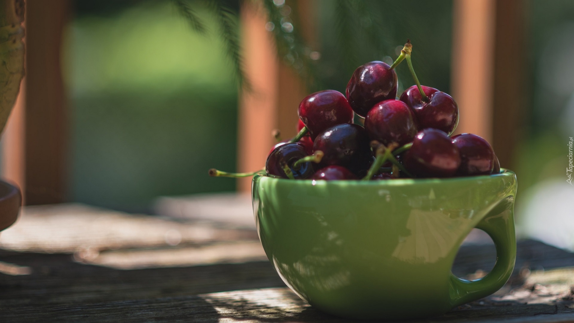 Edytor tapety: Czereśnie w filiżance
