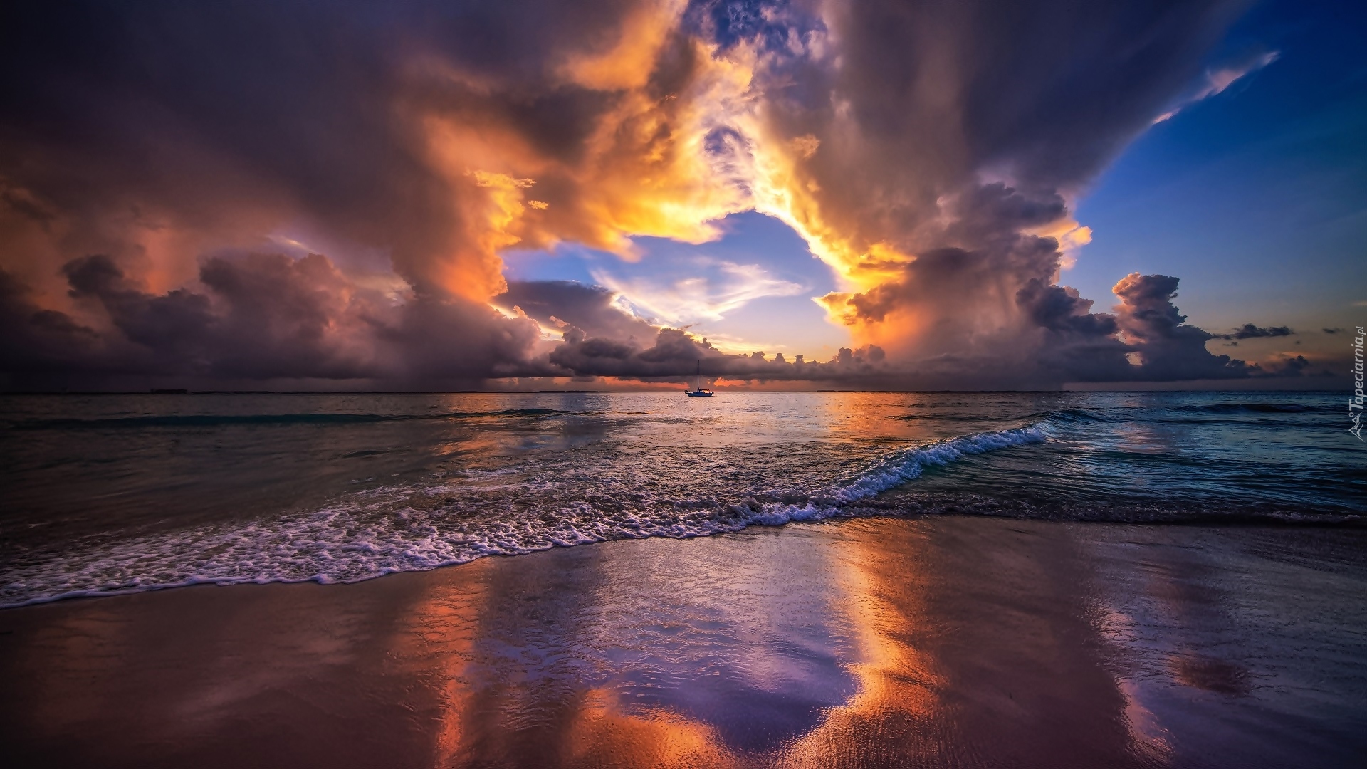 Edytor tapety: Zachód słońca nad morzem Karaibskim