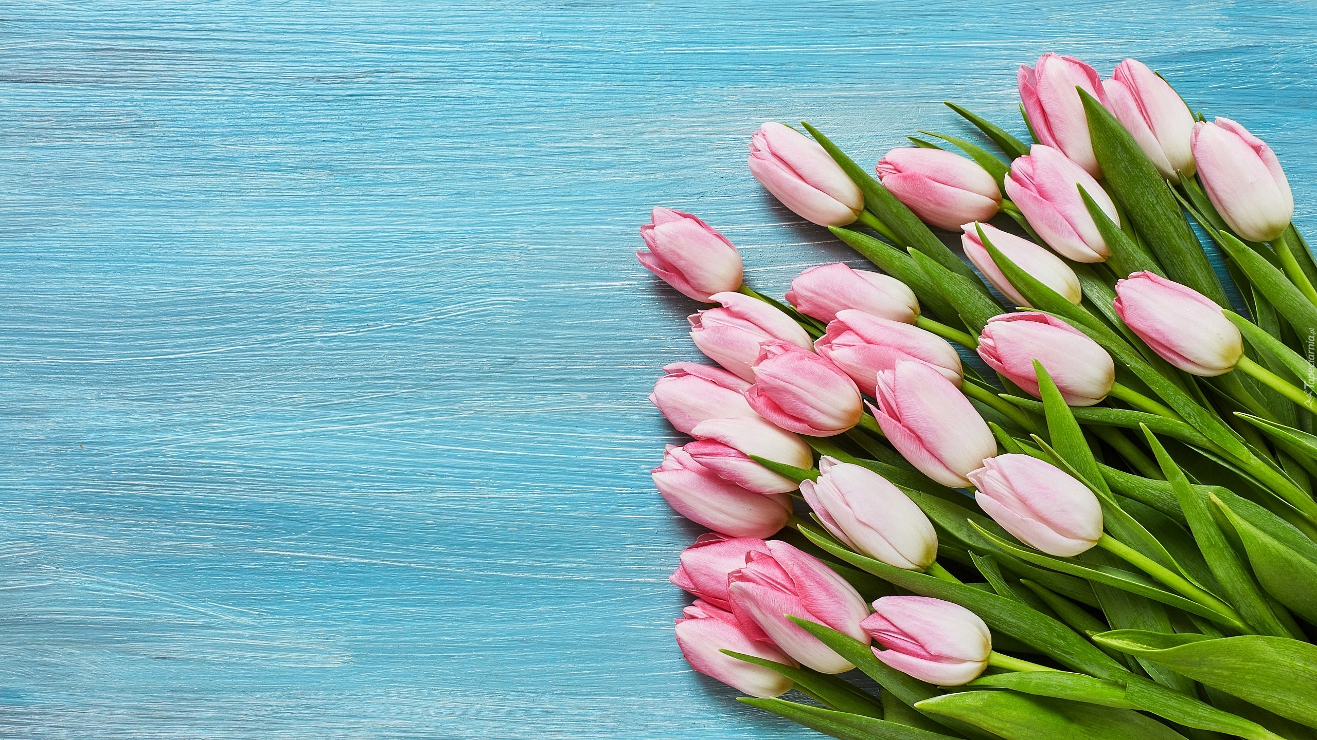 Edytor tapety: Jasnoróżowe, Tulipany, Niebieskie, Tło
