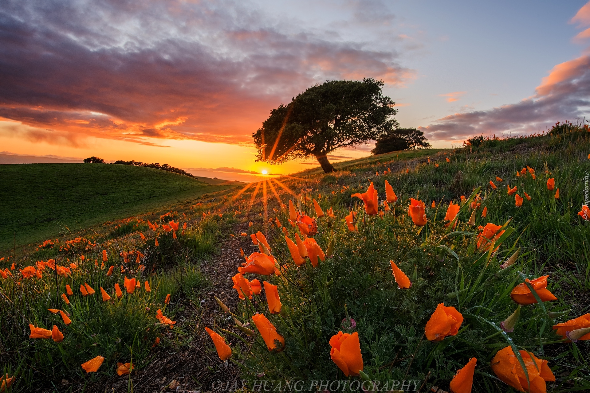 Edytor tapety: Pozłotki kalifornijskie na wzgórzu