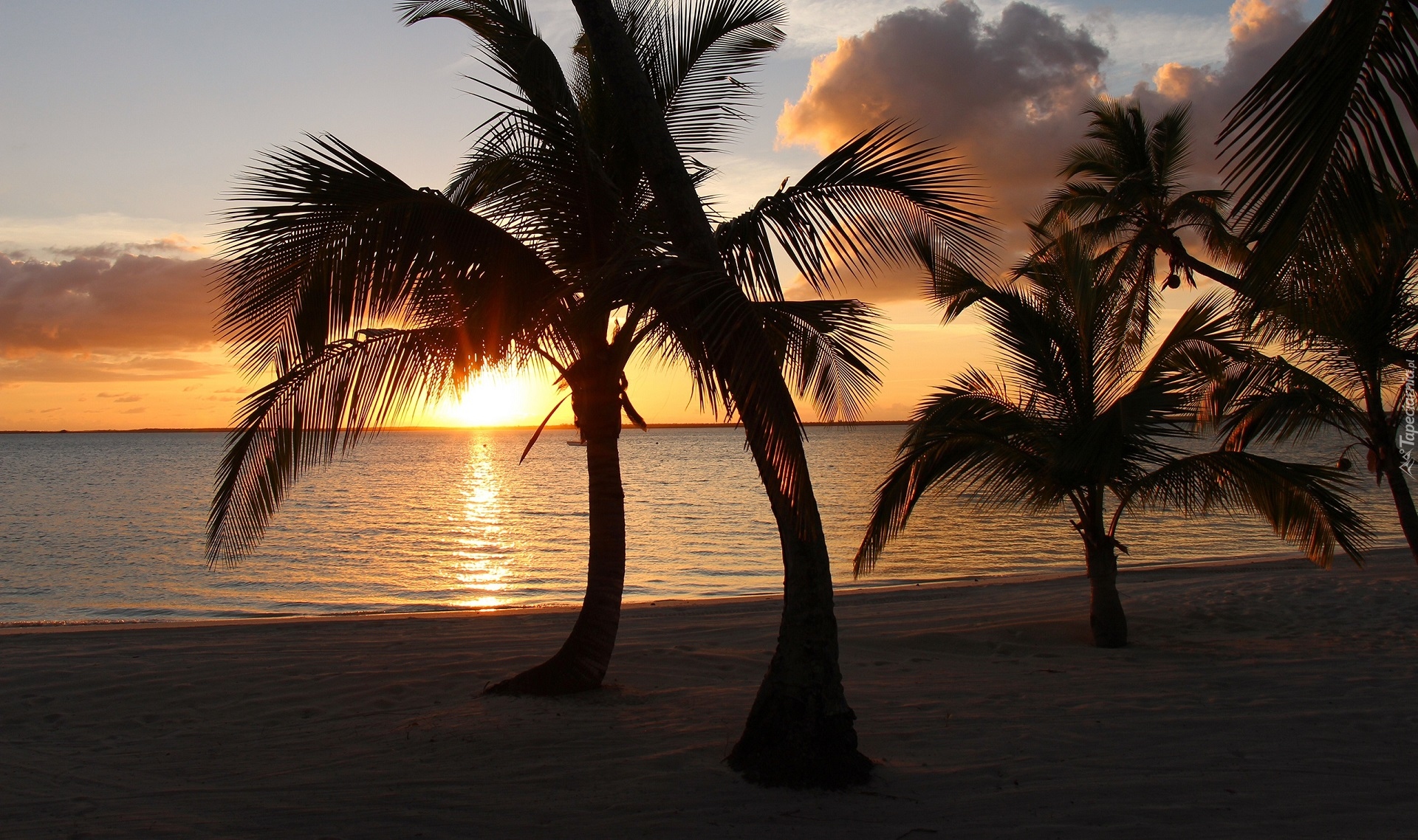 Edytor tapety: Palmy na tle nieba o zachodzie słońca