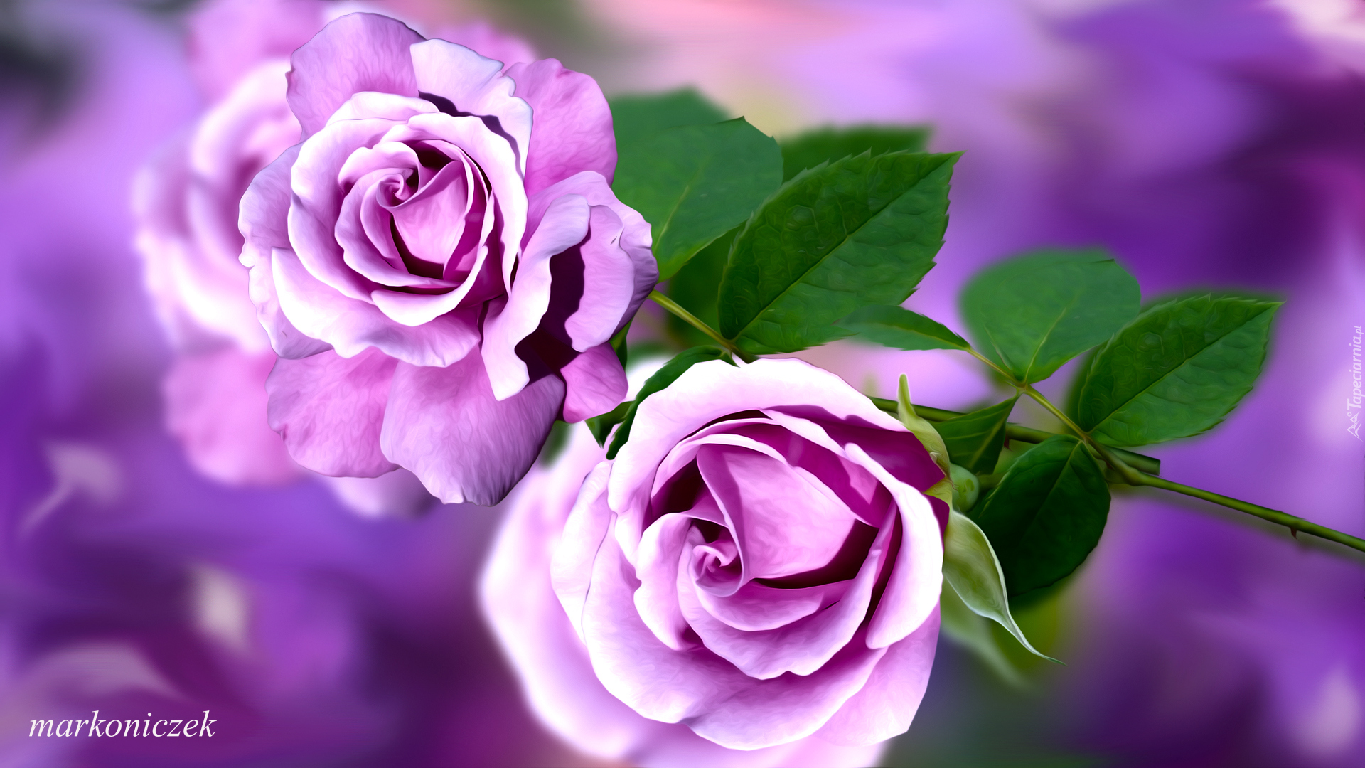 Edytor tapety: Dwie fioletowe róże w grafice