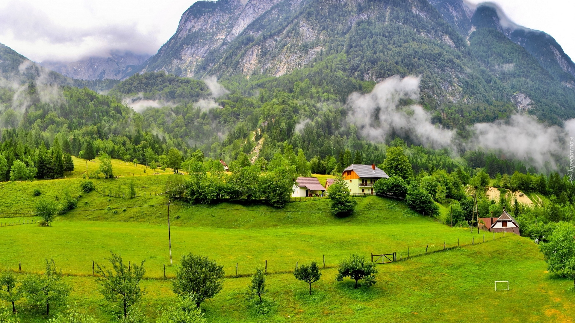 Edytor tapety: Domy u podnóża Alp Julijskich