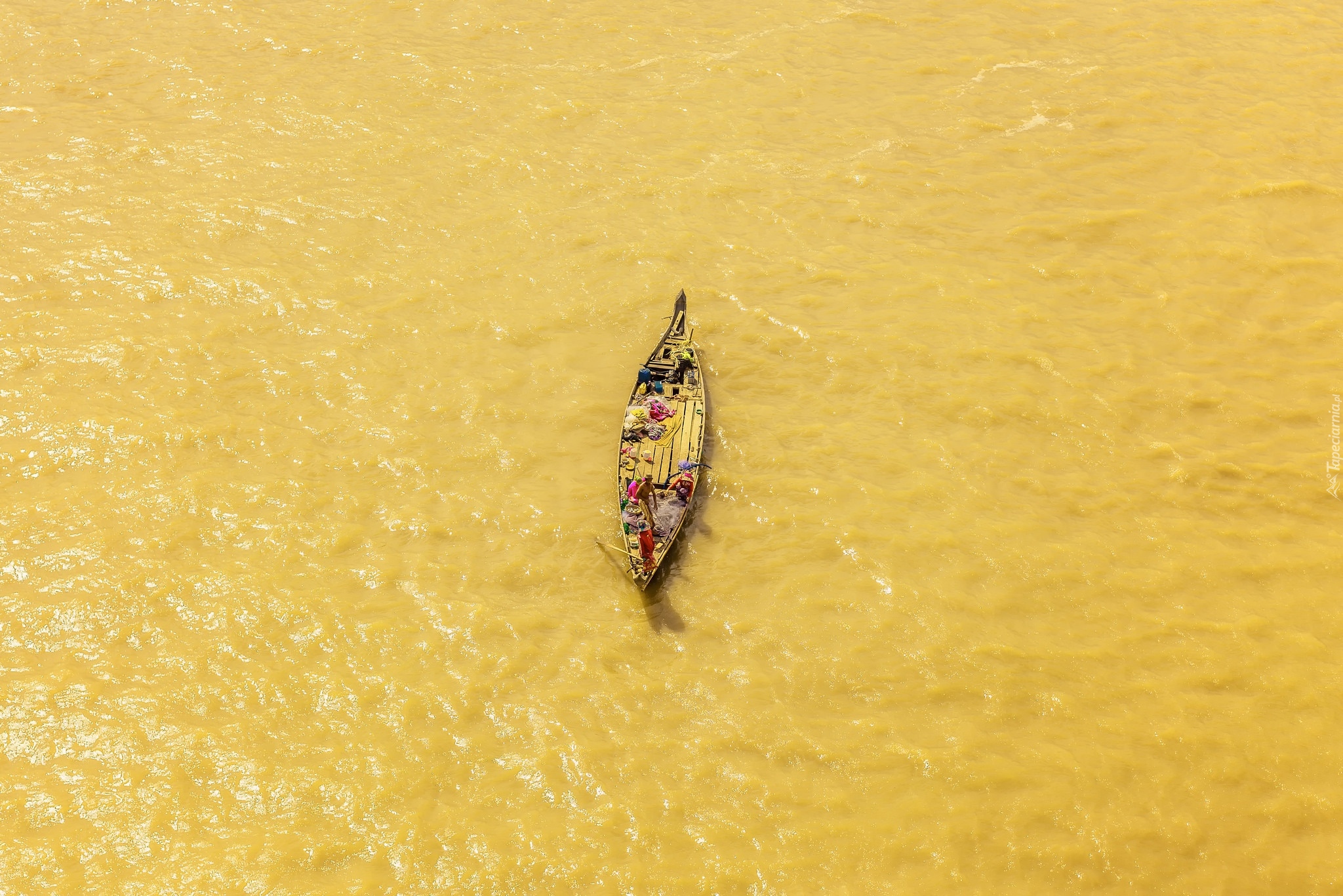 Edytor tapety: Łódka na żółtej wodzie