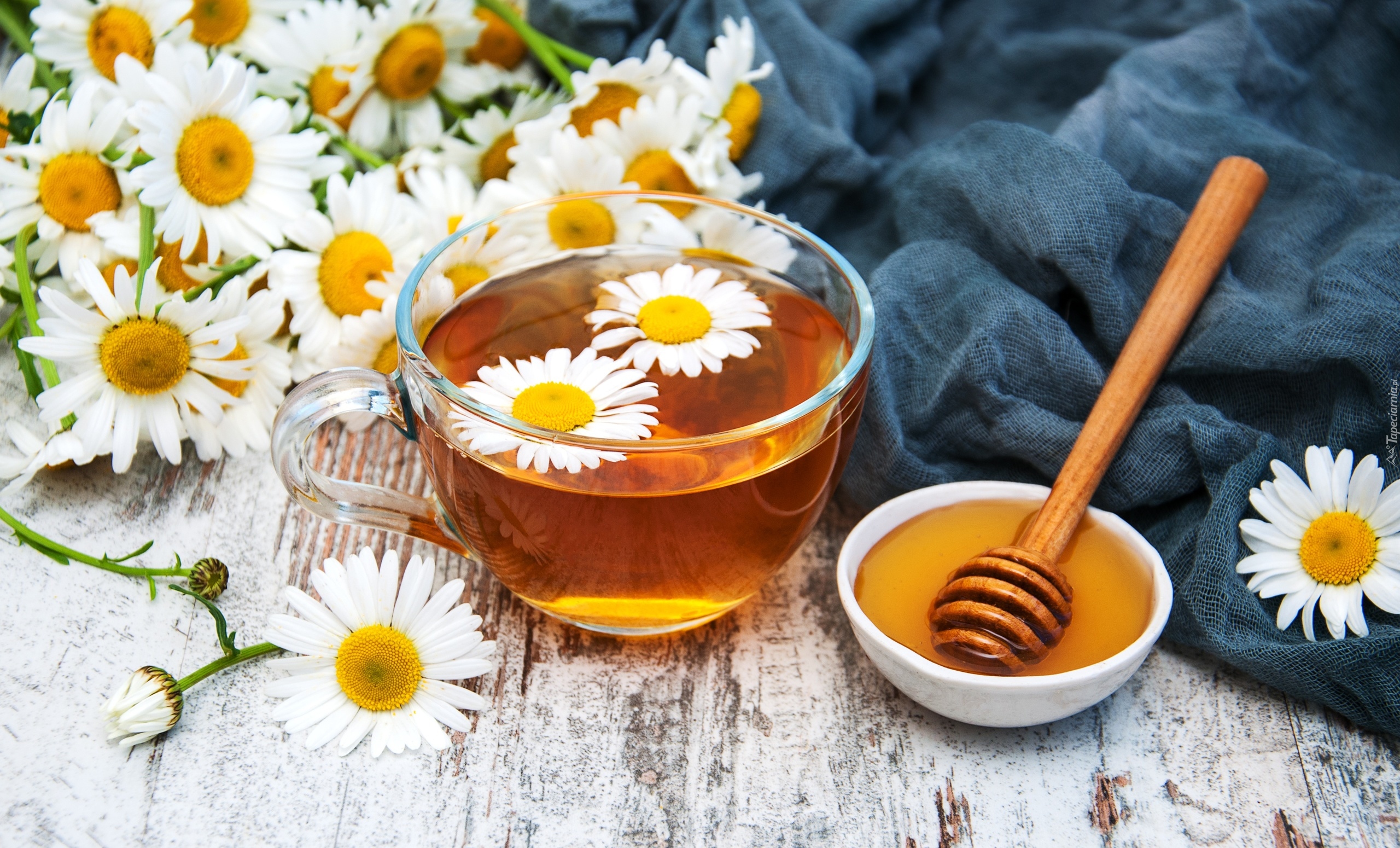 Edytor tapety: Rumiankowa herbata obok miseczki miodu