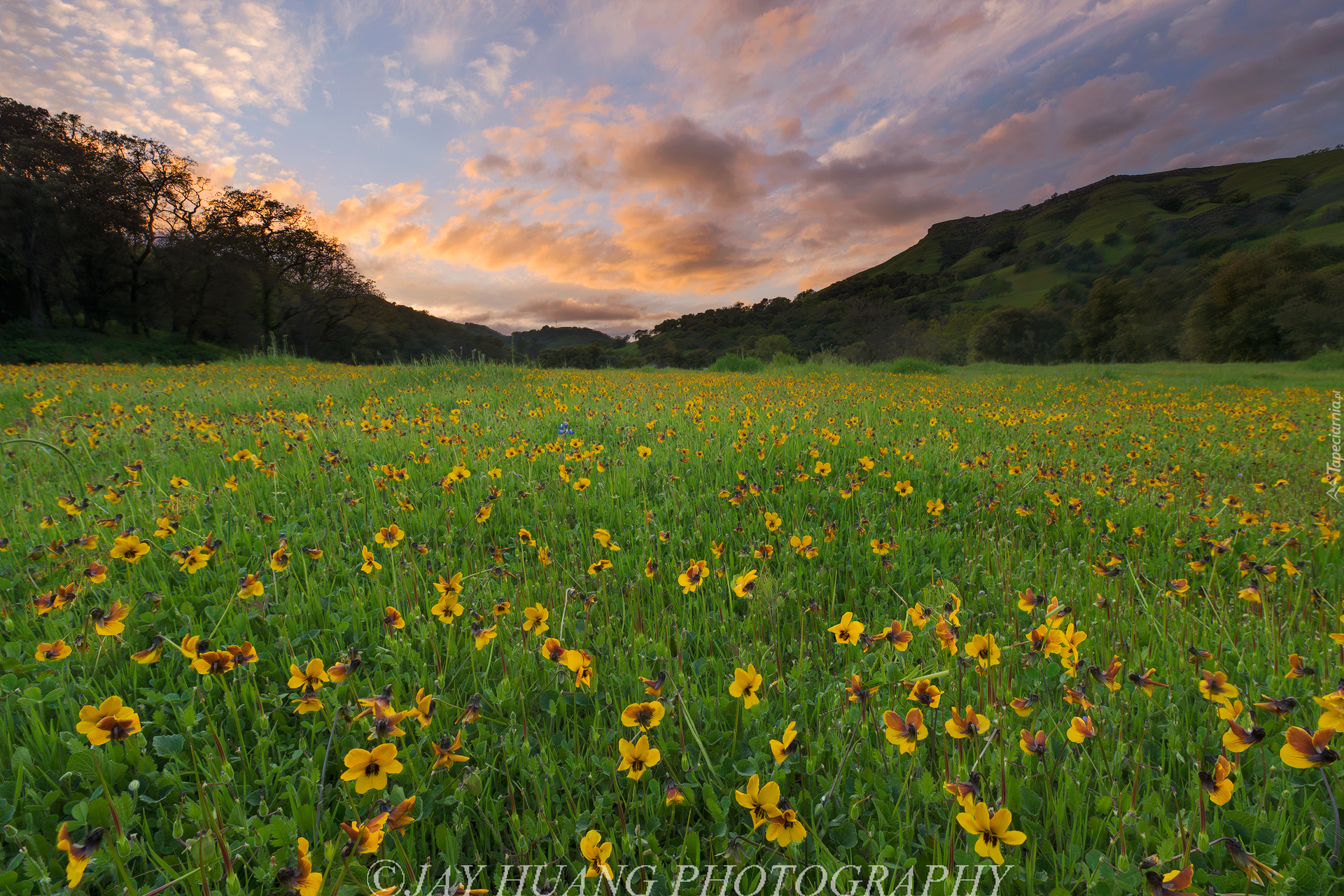 Edytor tapety: Żółte drobne kwiatki na łące