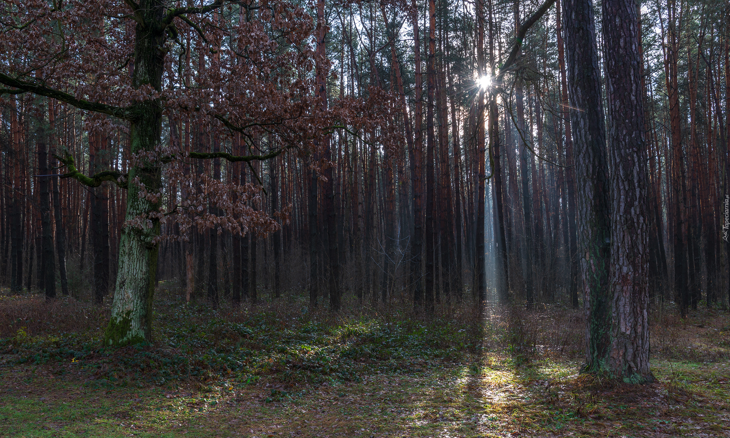 Edytor tapety: Las jesienią w promieniach słońca