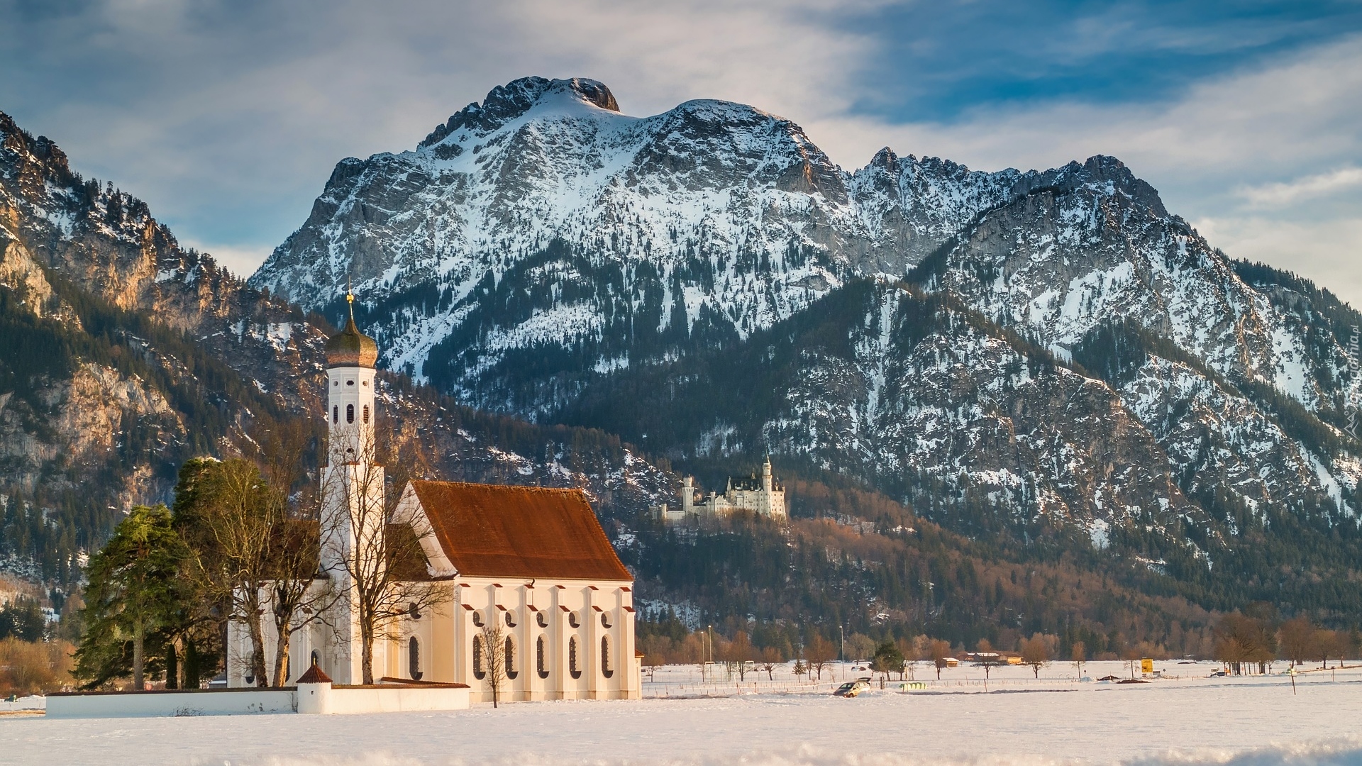 Edytor tapety: Kościół Eglise Saint Coloman na tle Alp