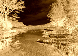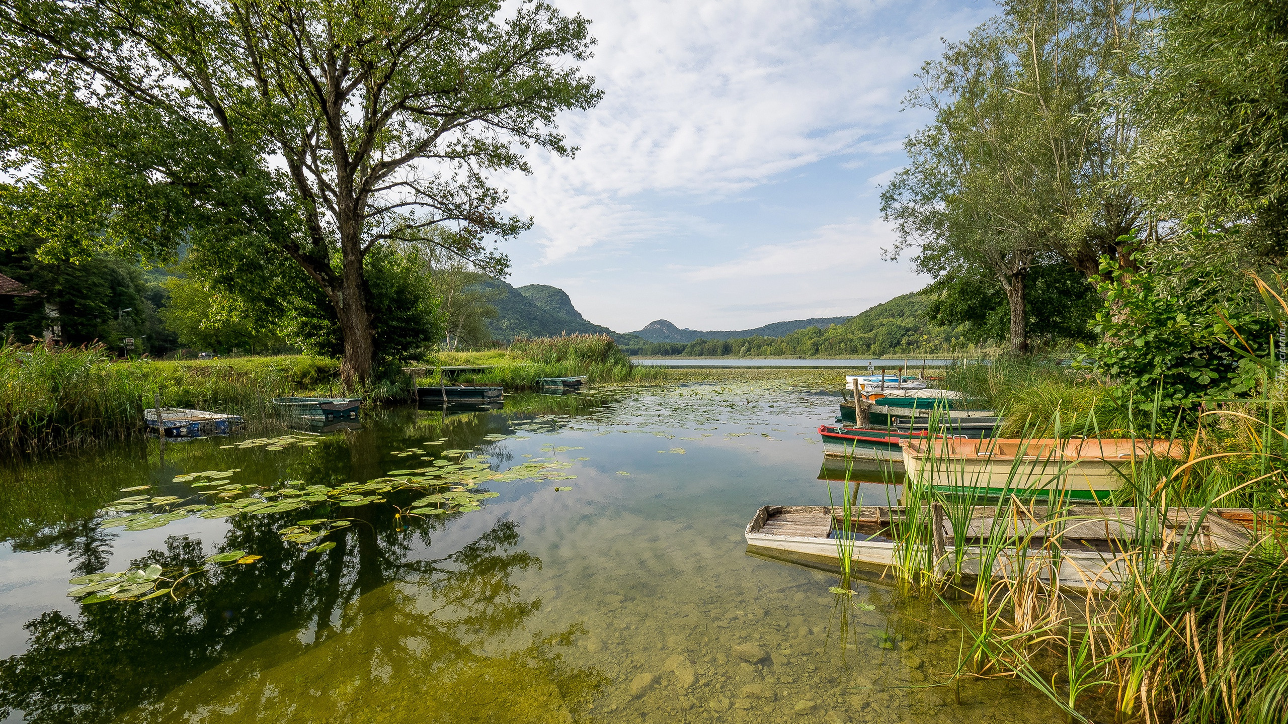 Edytor tapety: Łódki na brzegu jeziora Barterand we Francji