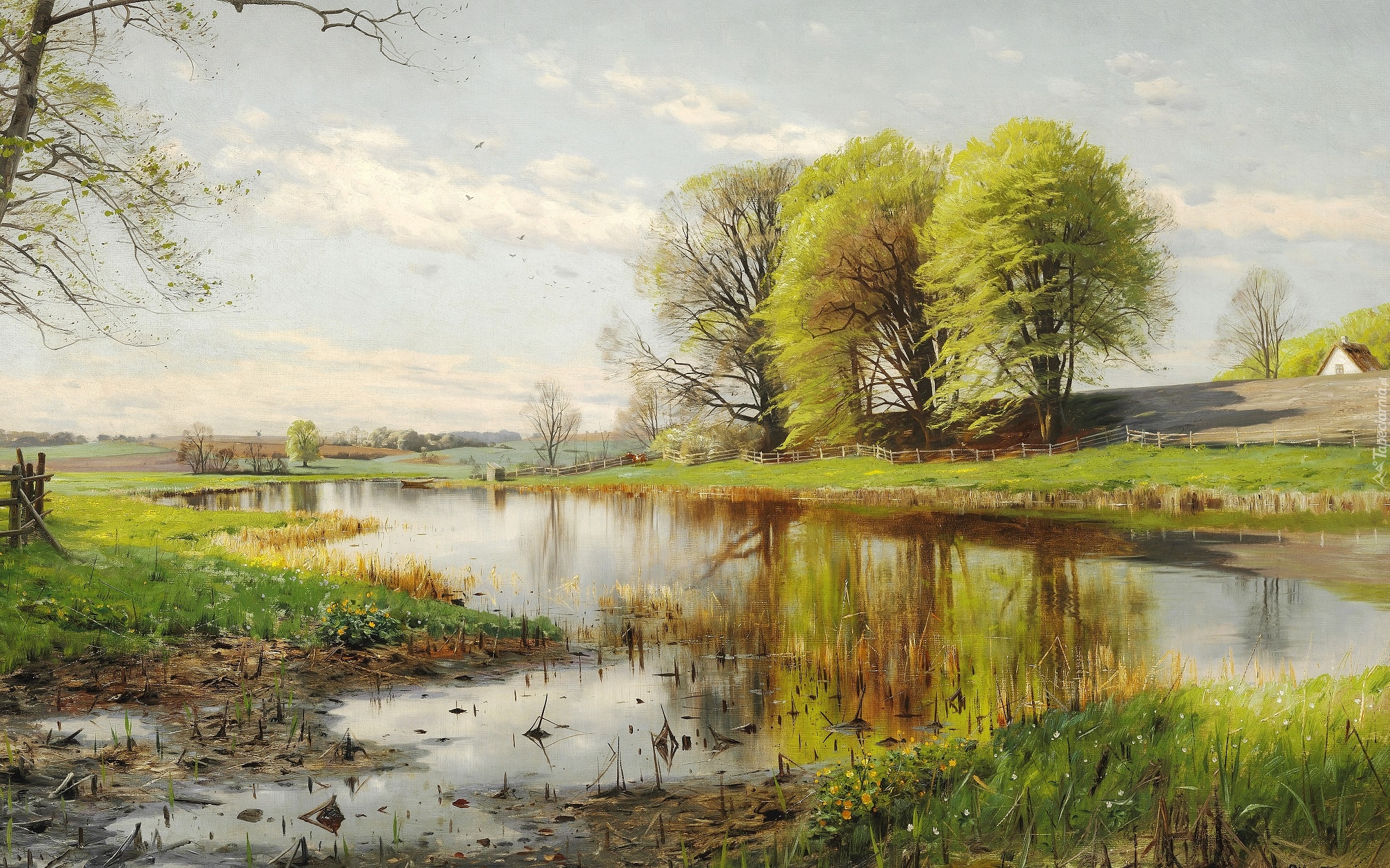 Edytor tapety: Drzewa nad stawem w malarstwie Pedera Mork Monsteda