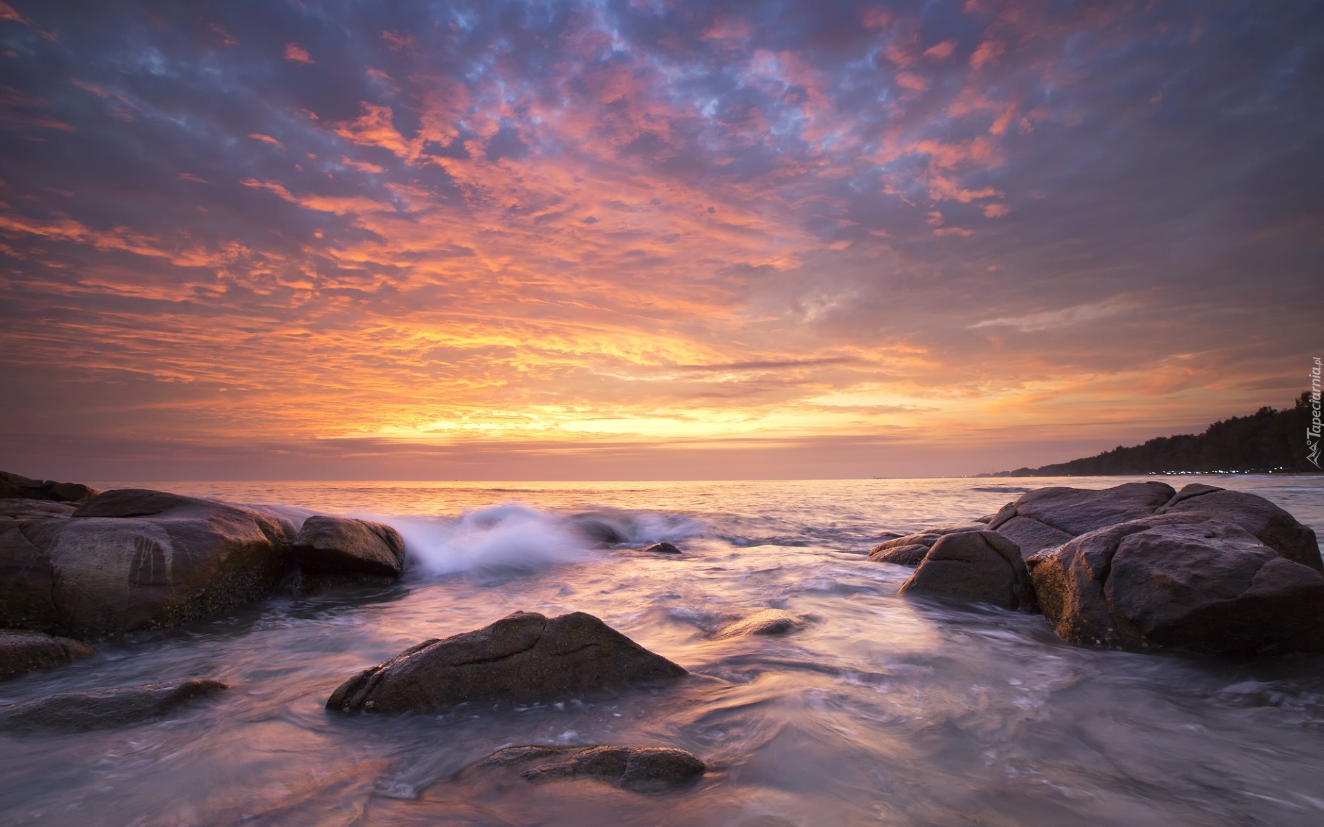Edytor tapety: Morze pod kolorowym niebem
