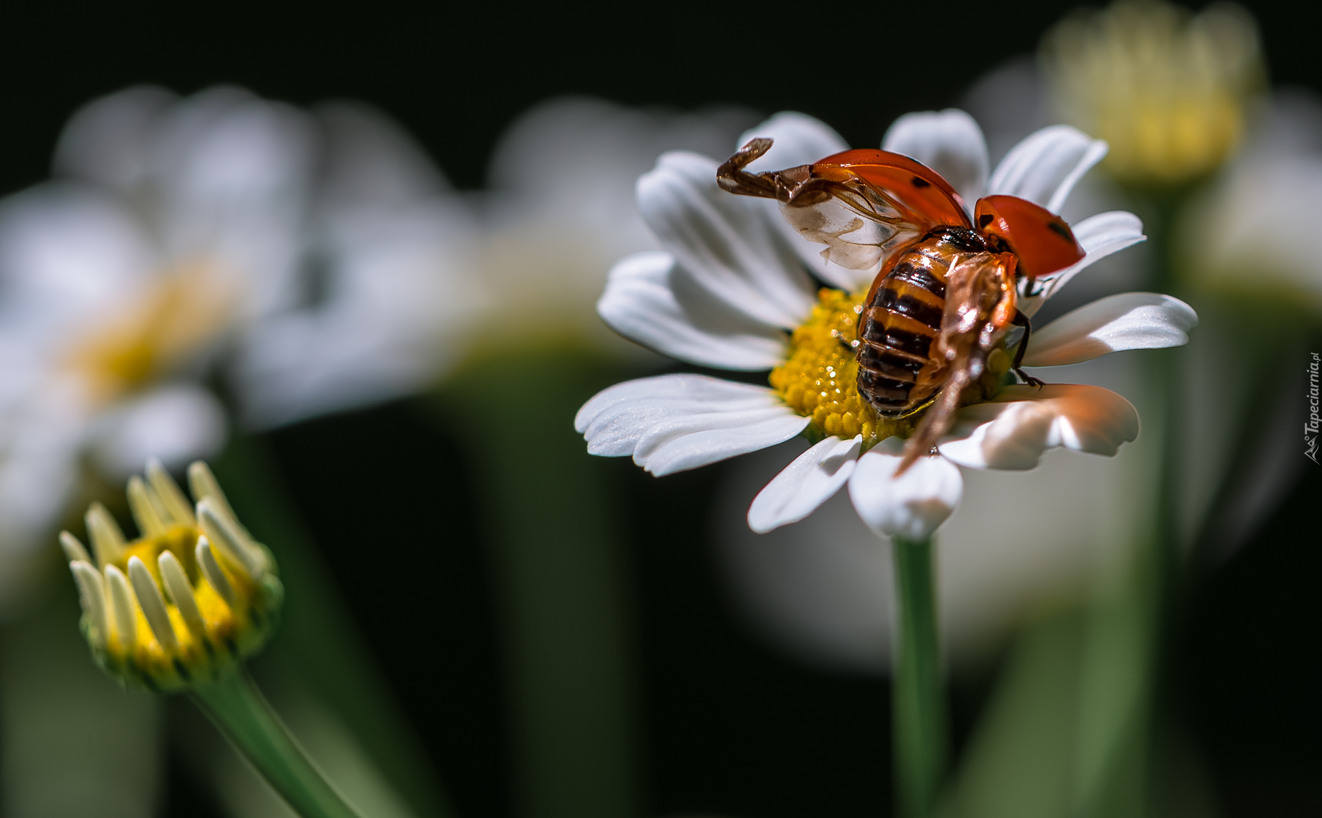 Edytor tapety: Biedronka z rozpostartymi skrzydłami na kwiatku