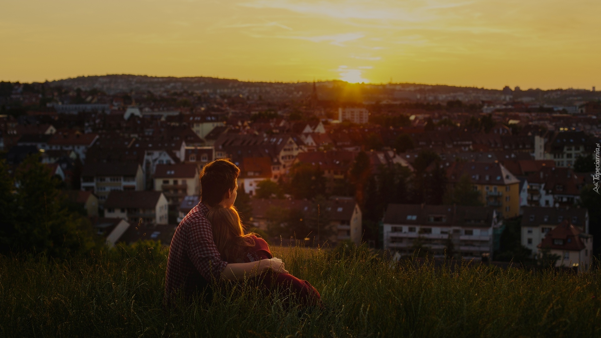 Edytor tapety: Zakochani zapatrzeni na wschód słońca