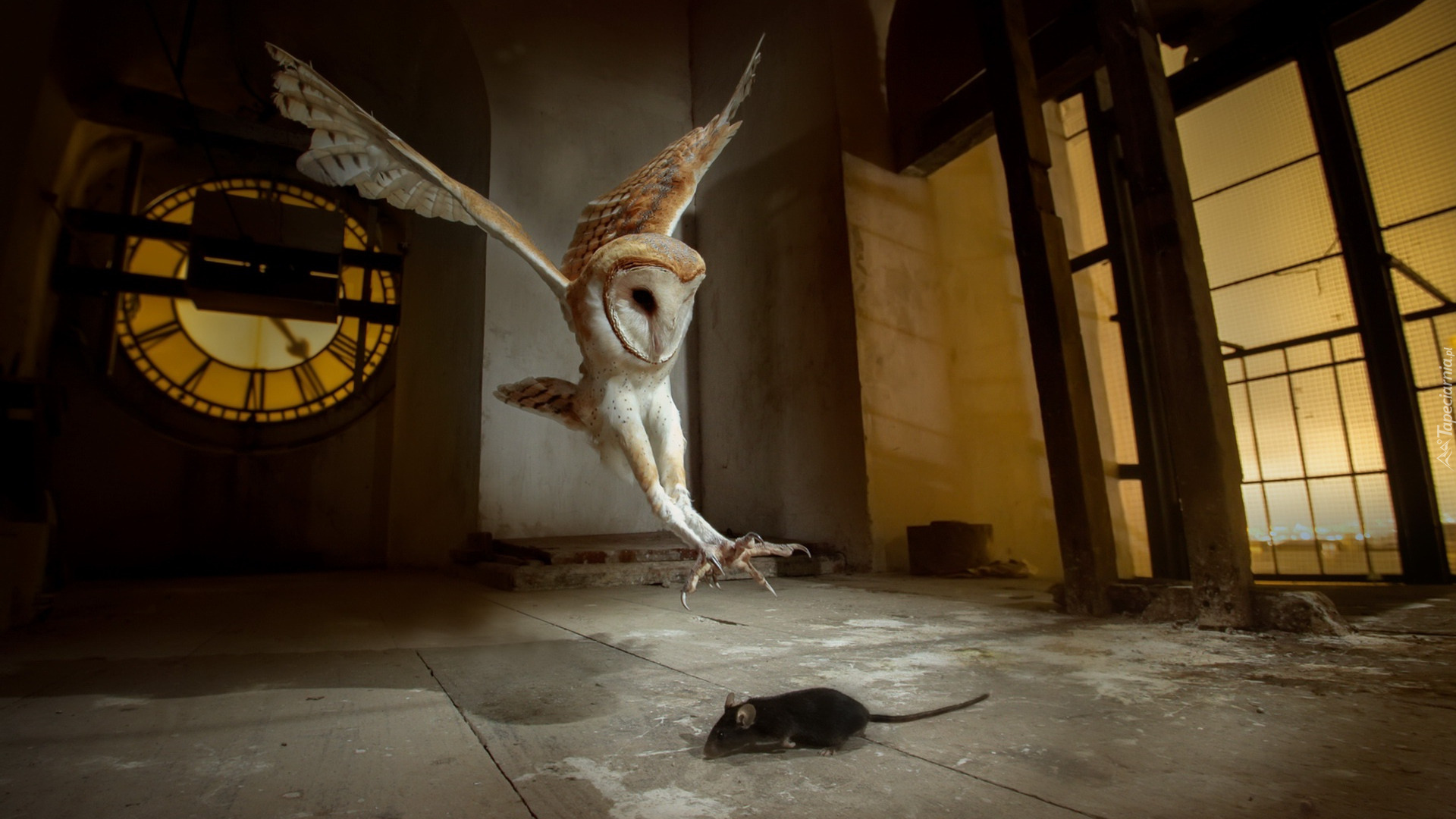 Edytor tapety: Sowa atakująca mysz