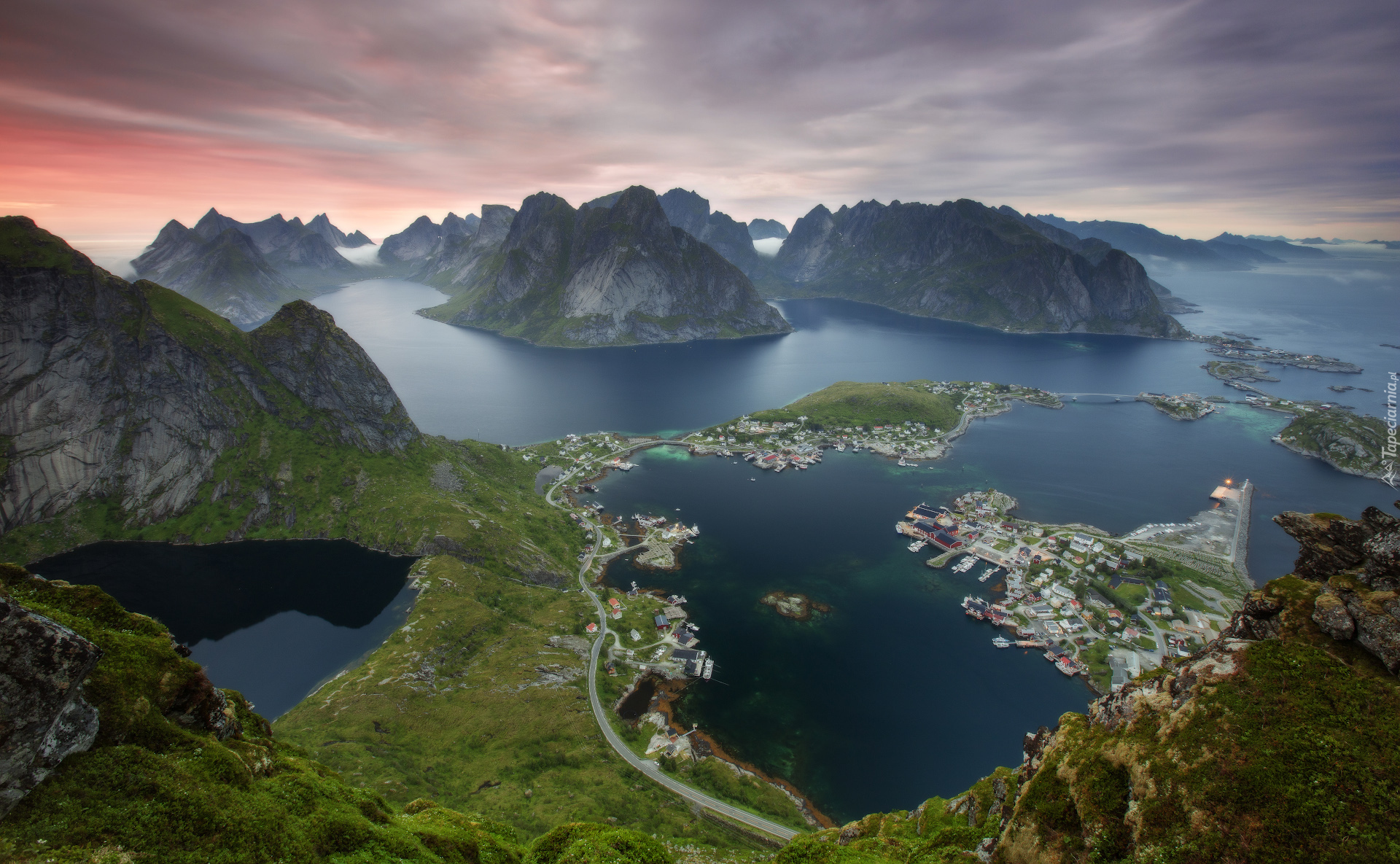 Edytor tapety: Widok na wioskę Reine z wierzchołka Reinebringen