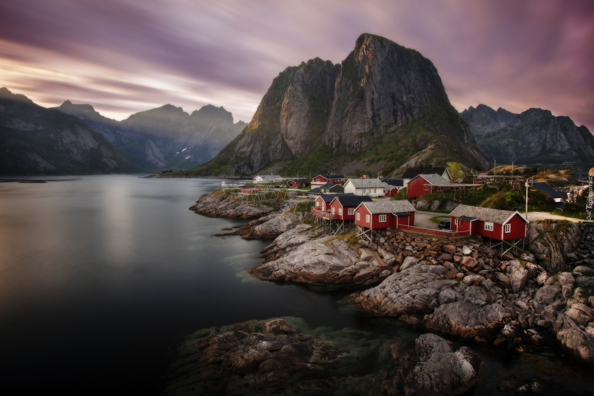 Edytor tapety: Wioska Reine na tle gór w Norwegii