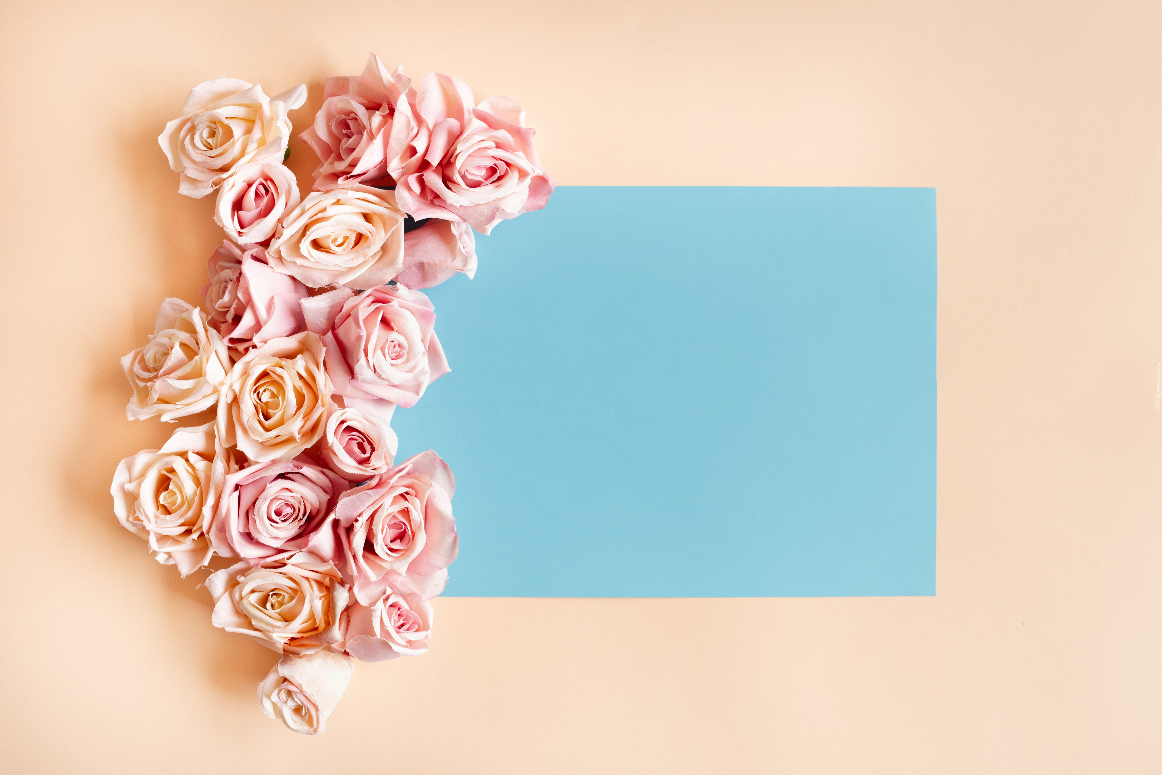 Edytor tapety: Róże ułożone obok niebieskiej kartki