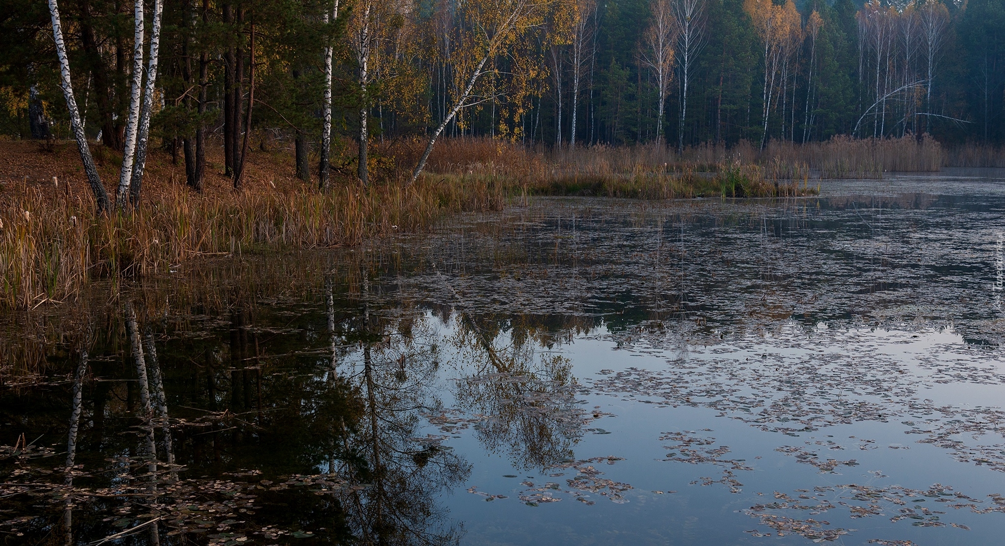 Edytor tapety: Jesień w lesie nad jeziorem