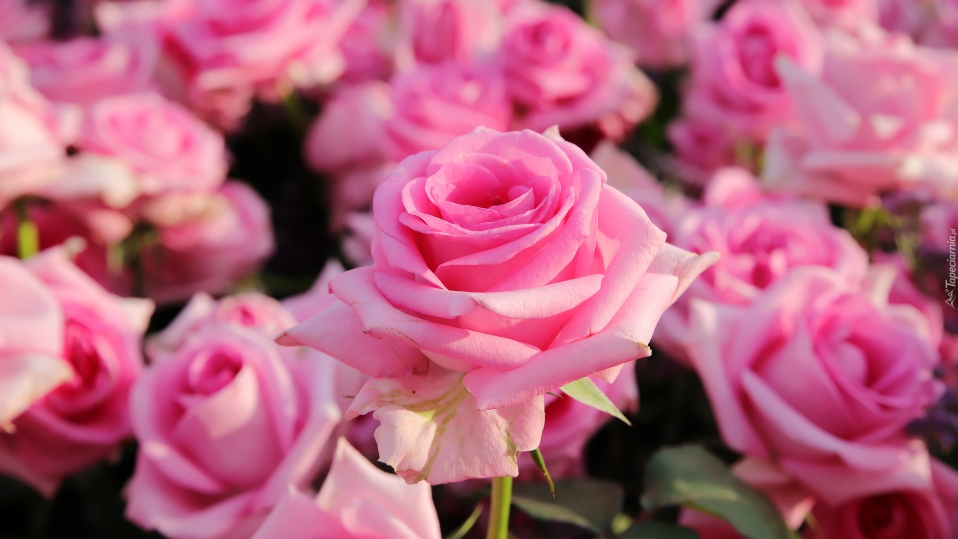 Edytor tapety: Rozwinięta różowa róża w zbliżeniu