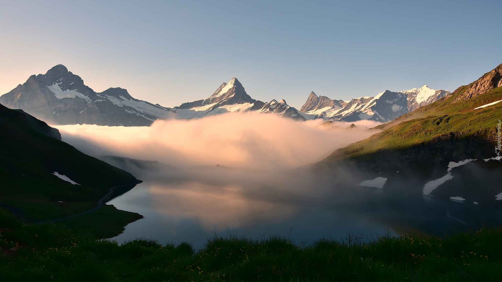 Edytor tapety: Mgła nad szwajcarskim jeziorem Bachalpsee