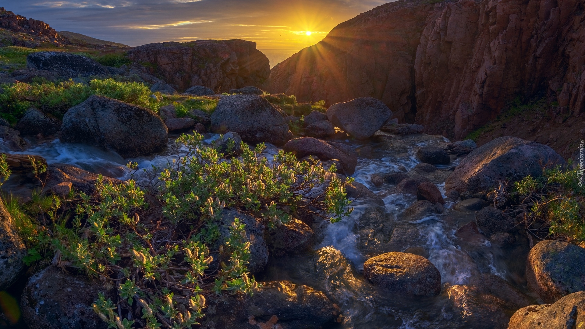 Edytor tapety: Rośliny i strumień pomiędzy kamieniami