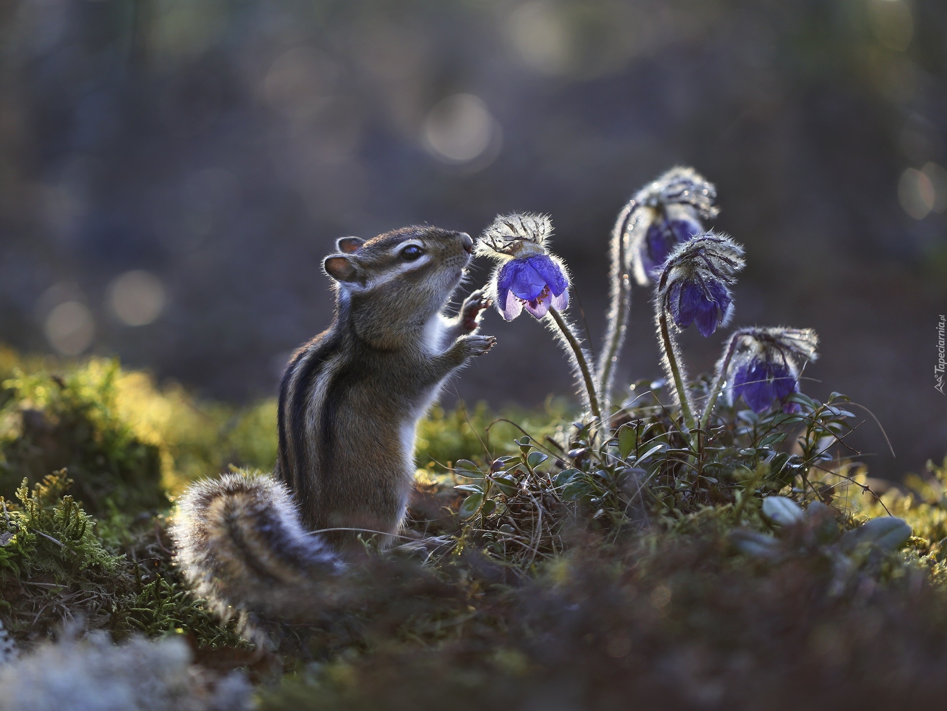 Edytor tapety: Chipmunk obok sasanek