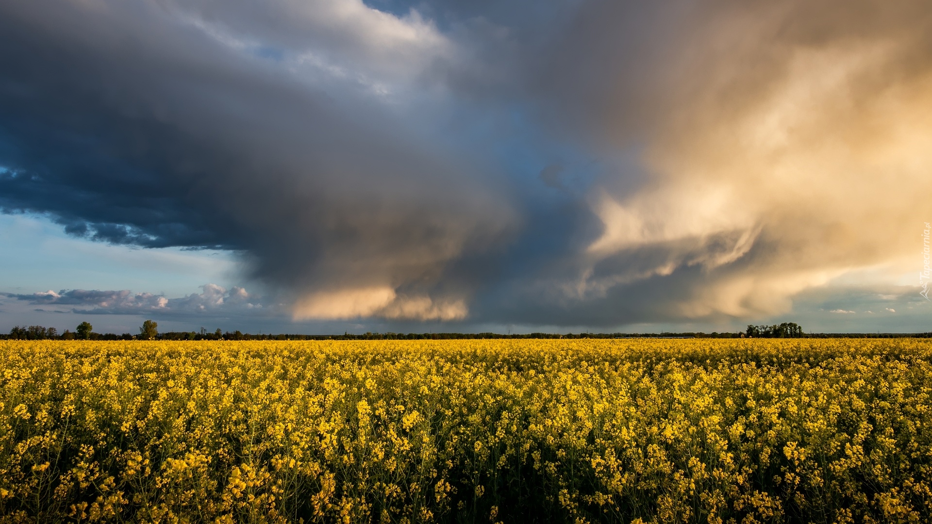 Edytor tapety: Ciemne chmury nad polem rzepaku