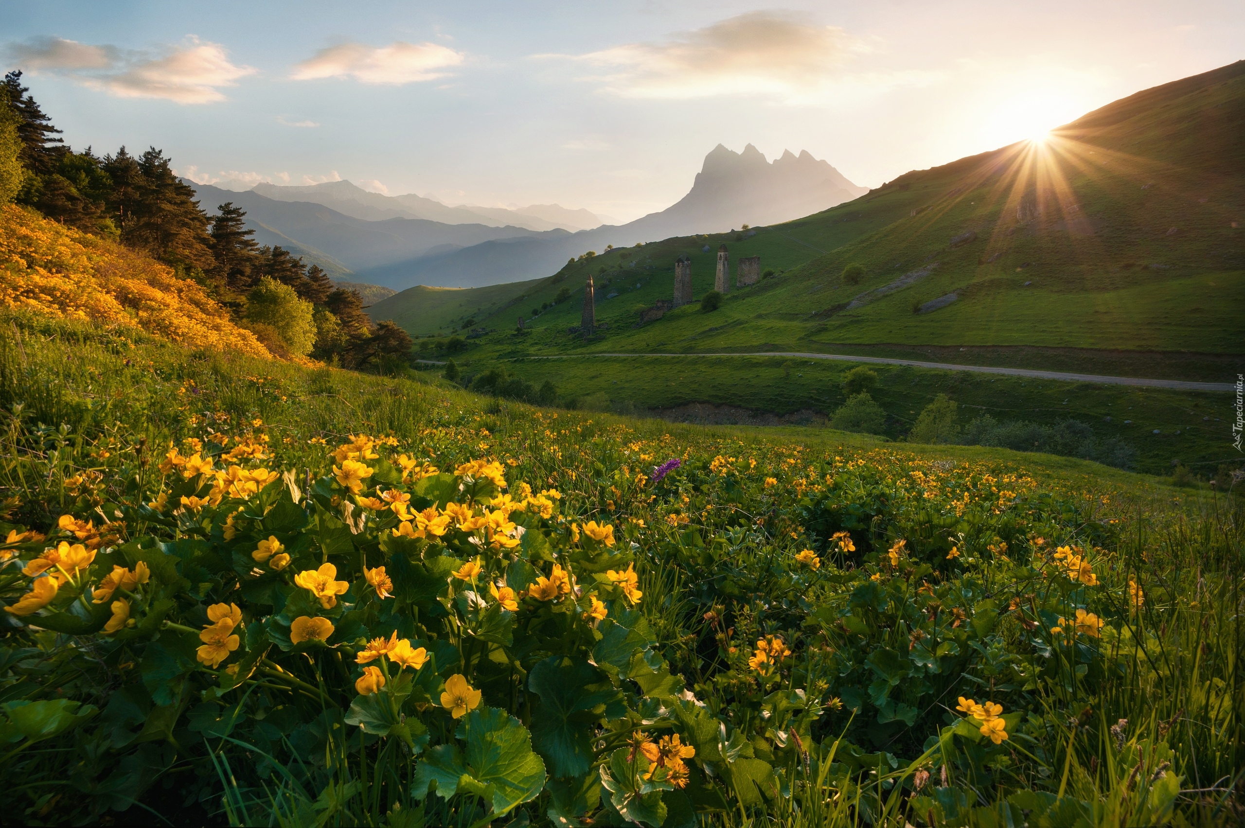 Edytor tapety: Promienie słońca nad wzgórzami w Erzi