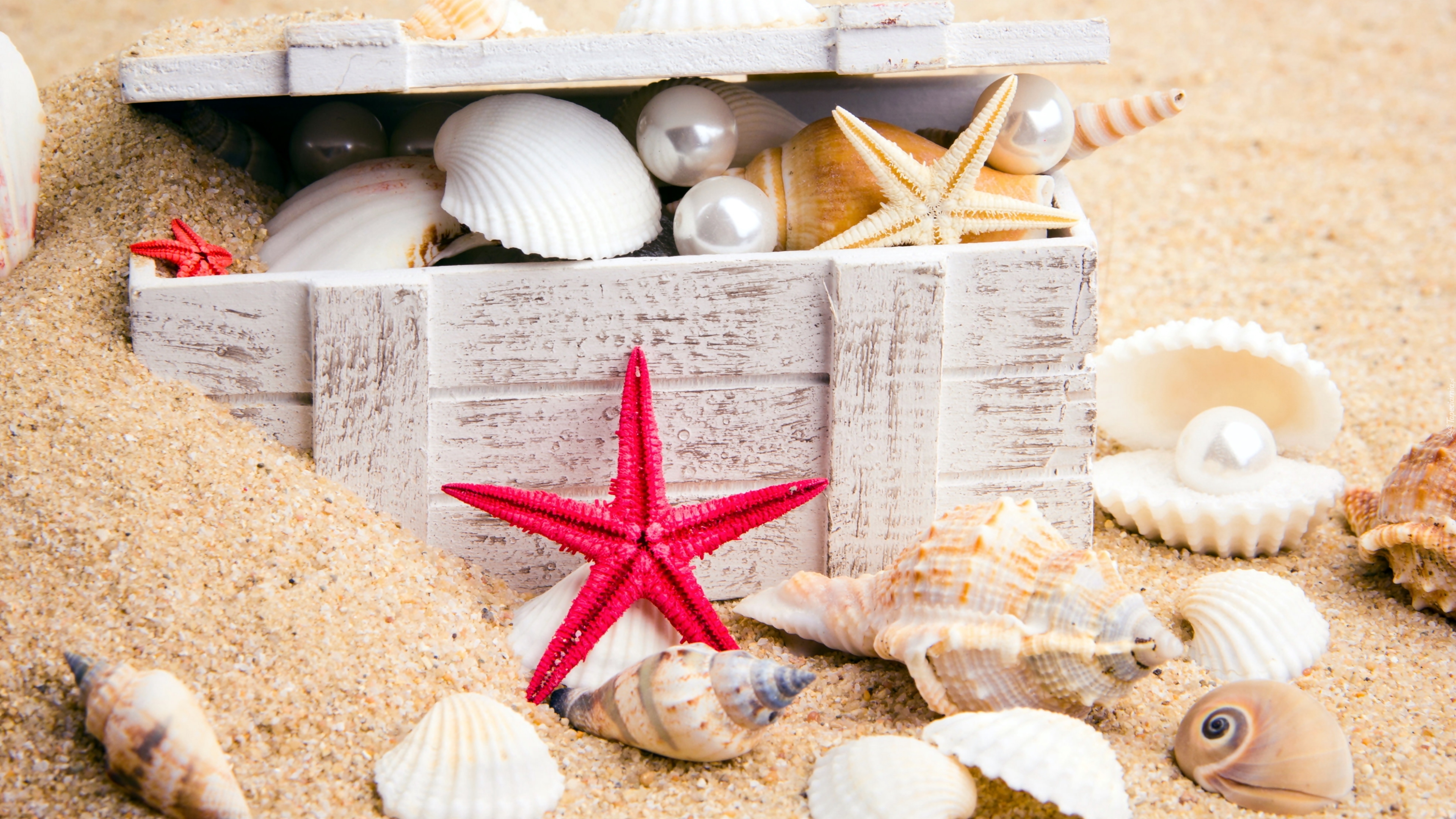 Edytor tapety: Skrzynka z muszelkami i rozgwiazdy