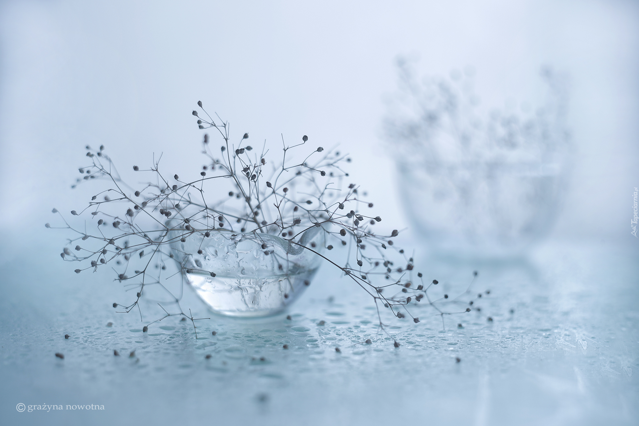 Edytor tapety: Szklany wazonik z suchą roślinką