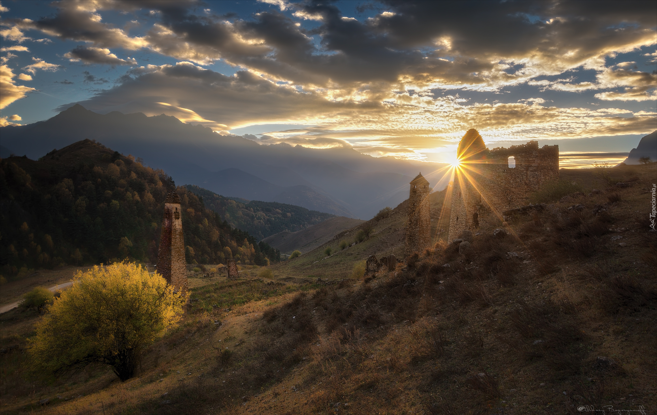 Edytor tapety: Ruiny wież obronnych w Inguszetii