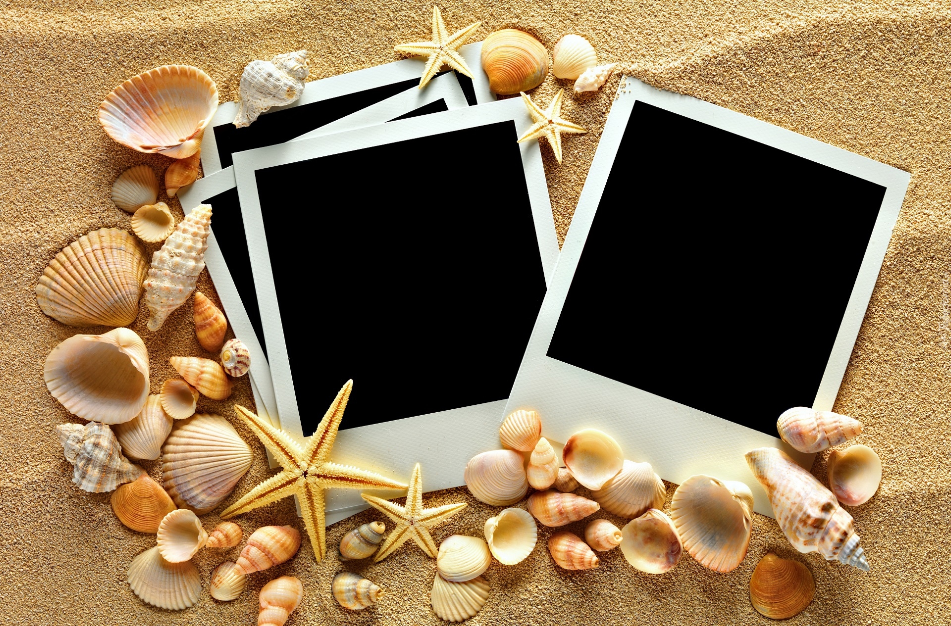 Edytor tapety: Ramki na zdjęcia obok muszelek na piasku