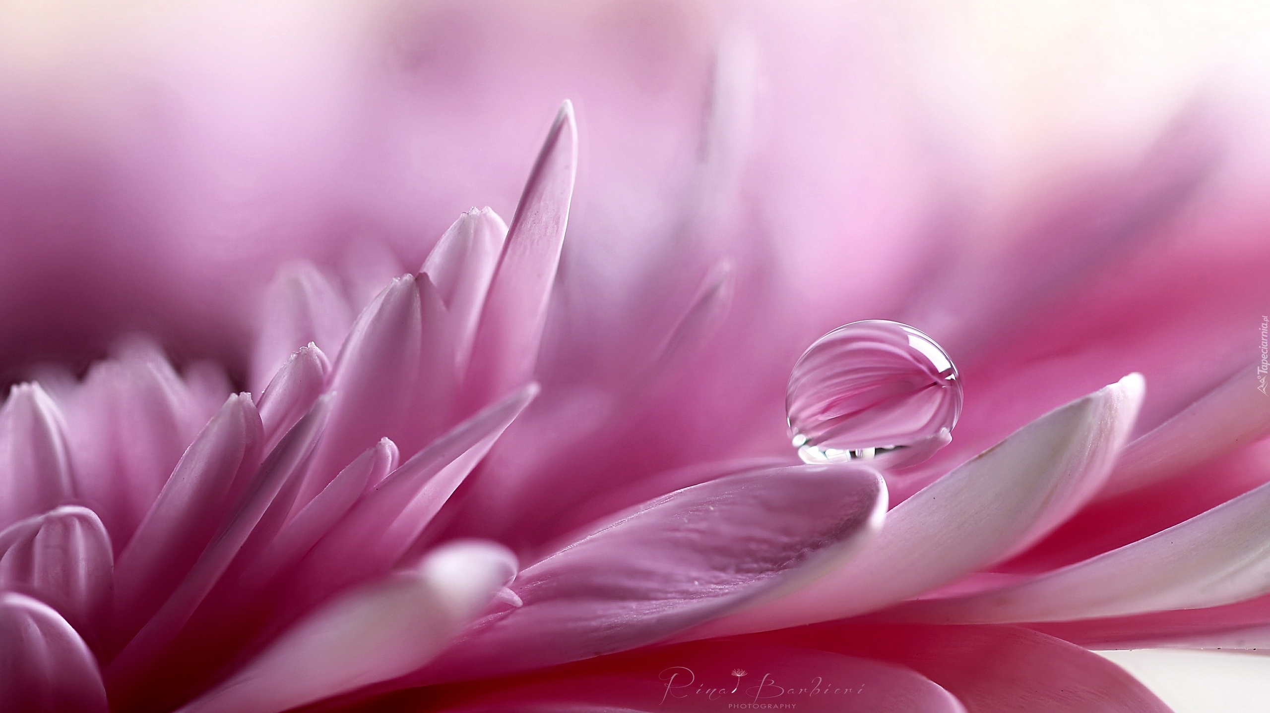 Edytor tapety: Kropla wody na różowym kwiatku